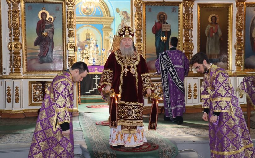 В четверг Страстной седмицы епископ Митрофан совершил Божественную литургию в кафедральном соборе Архангела Михаила г. Сердобска