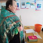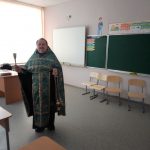 В соответствии с каноническими правилами священник с молитвой прошел по учебным кабинетам, окропил святой водой каждый класс.