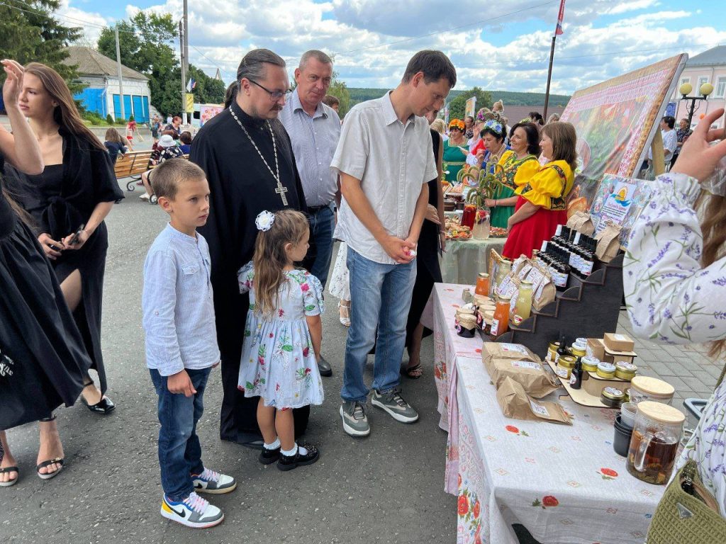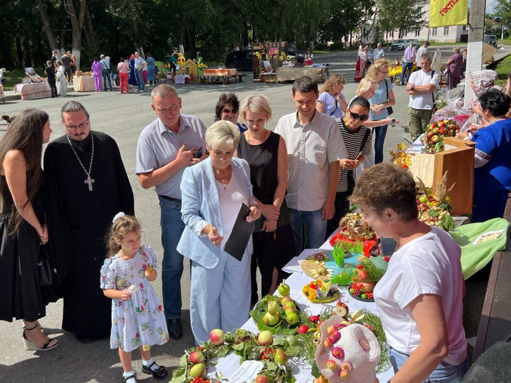 Иерей Константин Проскуряков тепло поздравил всех собравшихся на торжество и отметил, что эти праздники неразрывно связаны с урожаем: «В этом году Господь дал очень хороший урожай. Желаю, чтобы с помощью Божией, в каждом доме было изобилие плодов и всякого изобилия, а так же здоровья и Божиего благословения!»