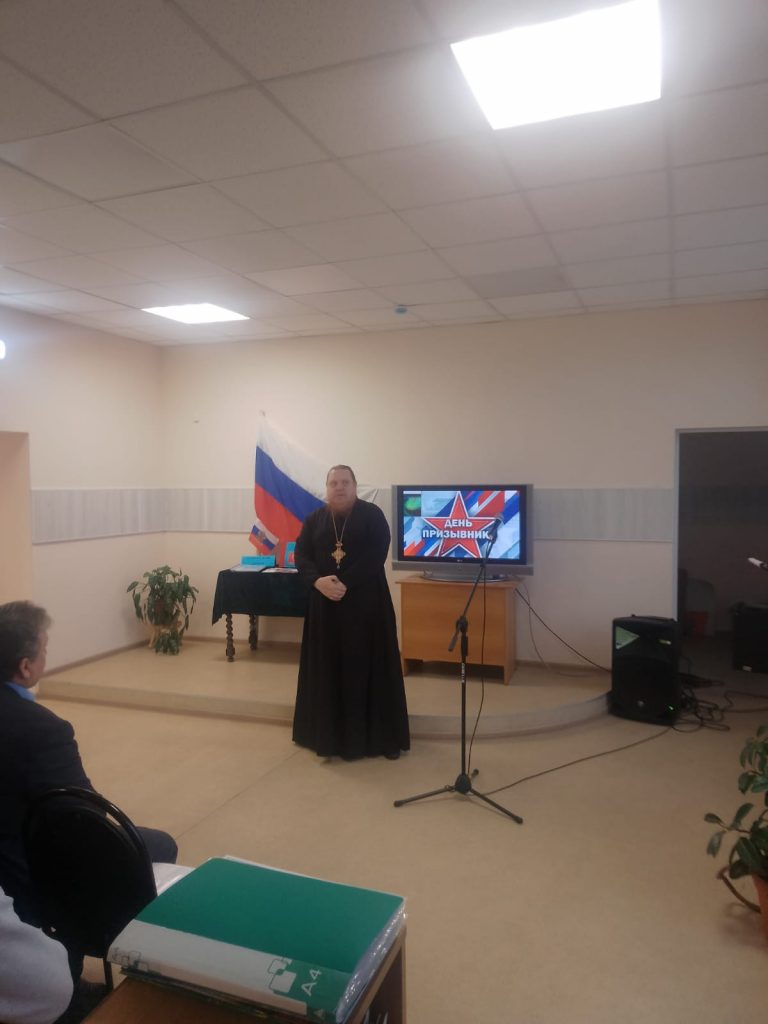 Протоиерей Олег Мамонов поздравил новобранцев, призванных в ряды Вооруженных Сил Российской Федерации, и пожелал всем помощи Божией на новом этапе взрослой жизни.