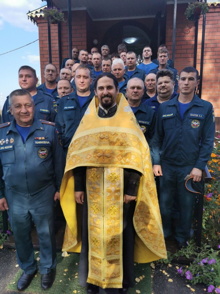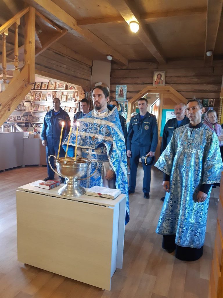 После молебна священник обратился к сотрудникам МЧС со словами благодарности за их труд и пожелал покрова Божией Матери.