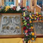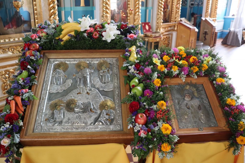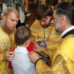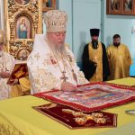 После Литургии было совершено славление святителю Митрофану Воронежскому перед иконой святителя и Его святых мощей, которая накануне была принесена в храм.
