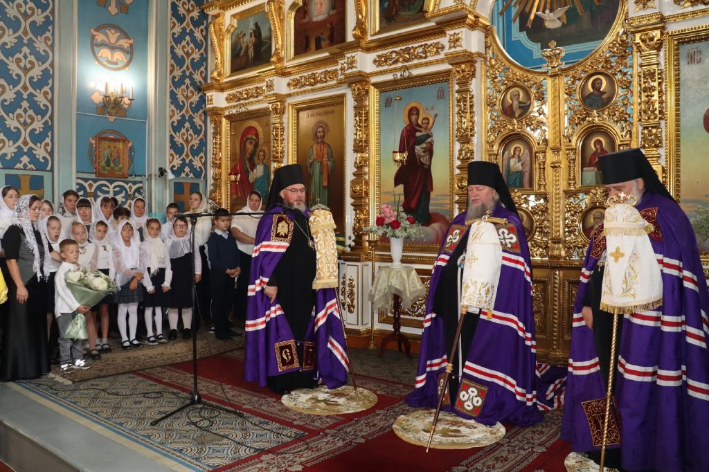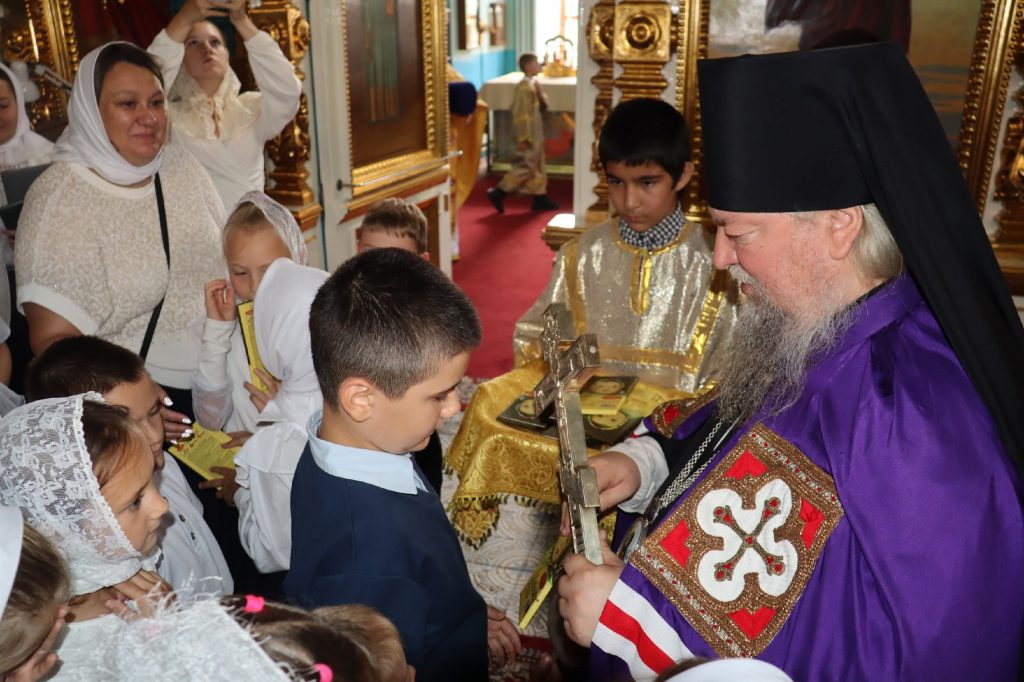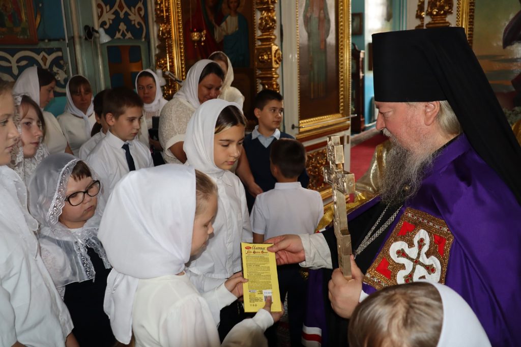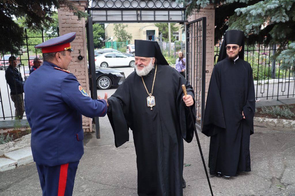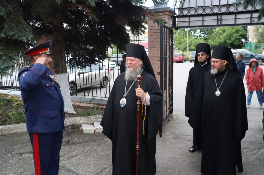 У входа в храм архипастырей встречали воспитанники православного разновозрастного хора Воскресной школы при храме Николая Чудотворца р.п. Колышлей (руководитель Татиана Пятунина), представители Сердобского Станичного Казачьего Общества.