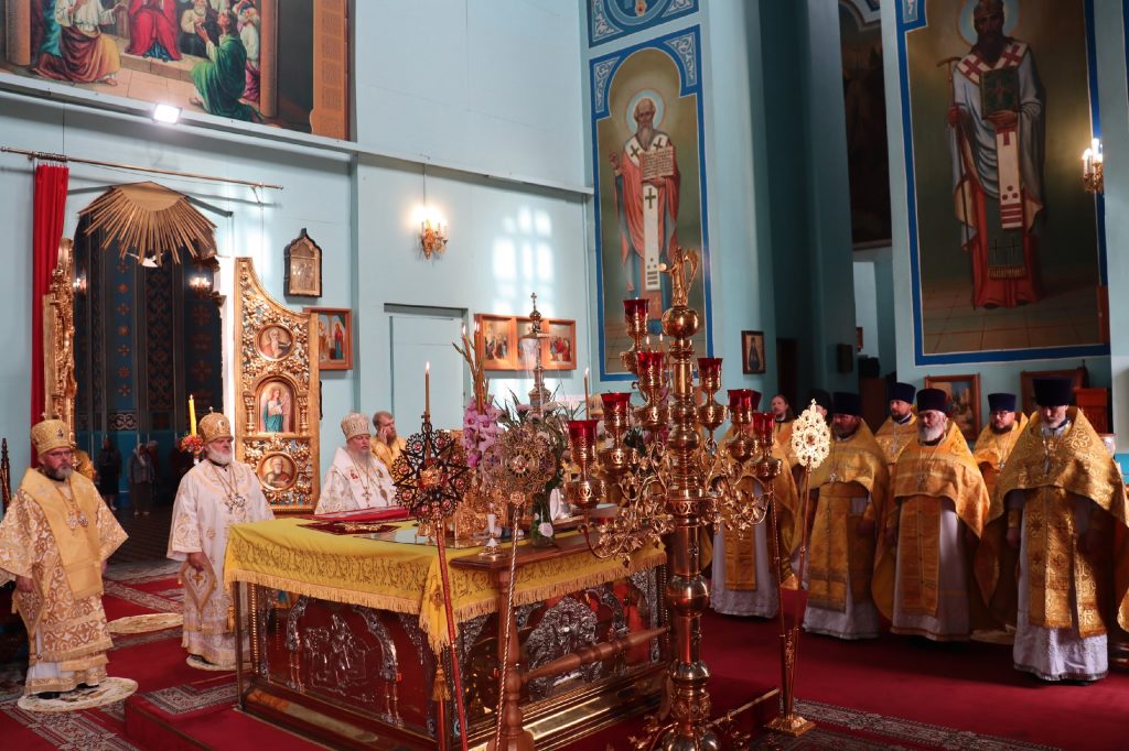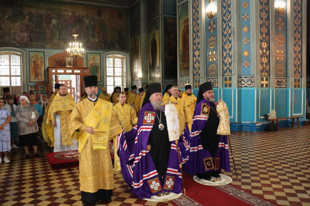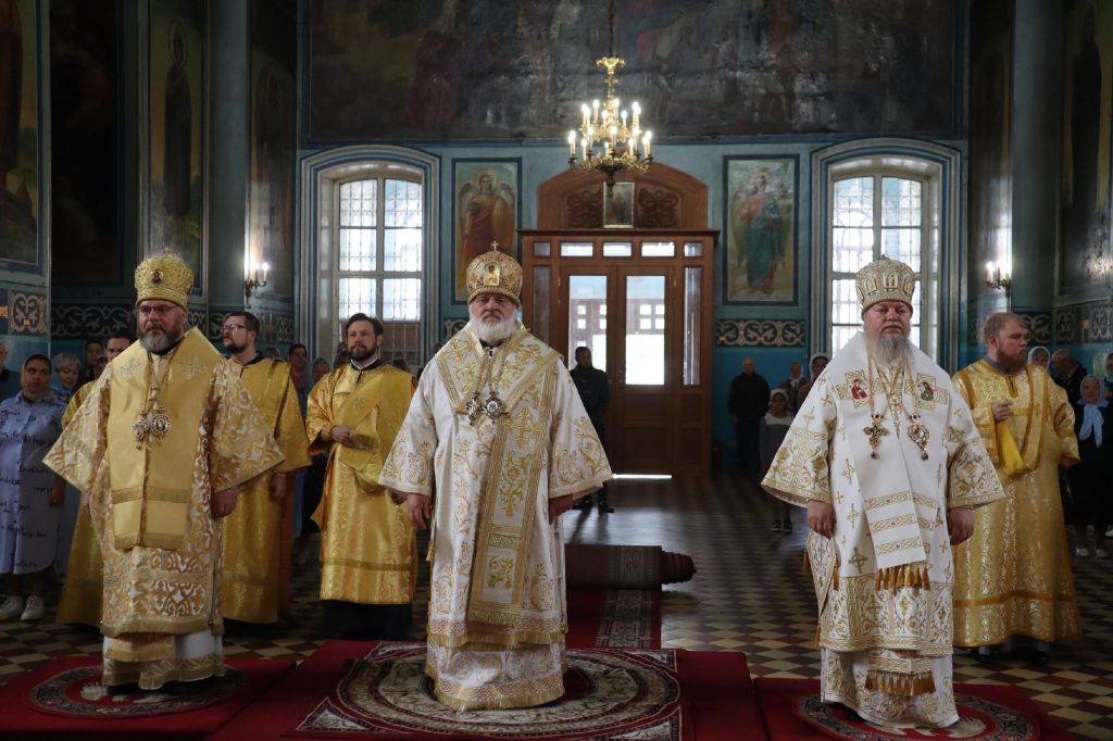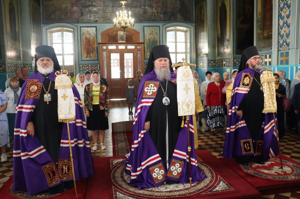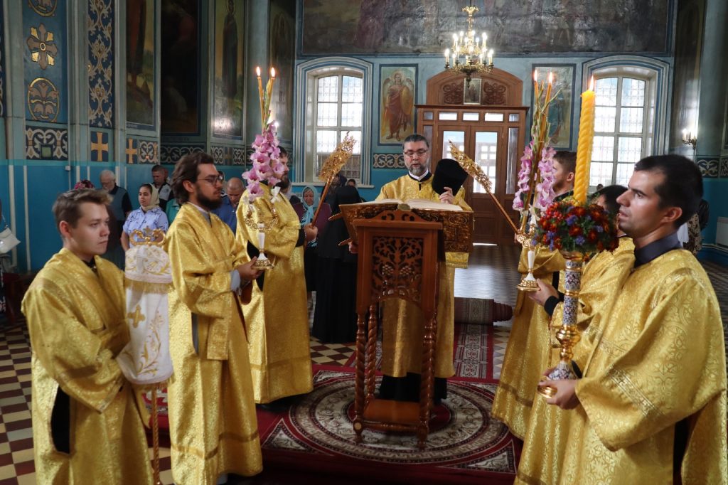 20 августа 2025 года, в среду седмицы 11-й по Пятидесятнице, в день памяти обретения мощей святителя Митрофана, в схиме Макария, первого епископа Воронежского (1832), епископ Кузнецкий и Никольский Назарий, епископ Балашовский и Ртищевский Тарасий, епископ Сердобский и Спасский Митрофан совершили Божественную литургию в кафедральном соборе Архангела Михаила г.Сердобска.