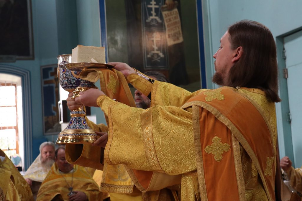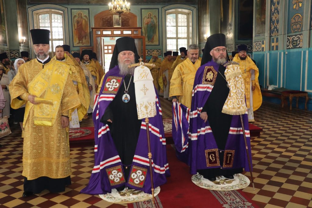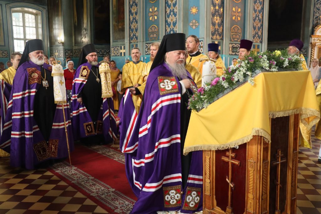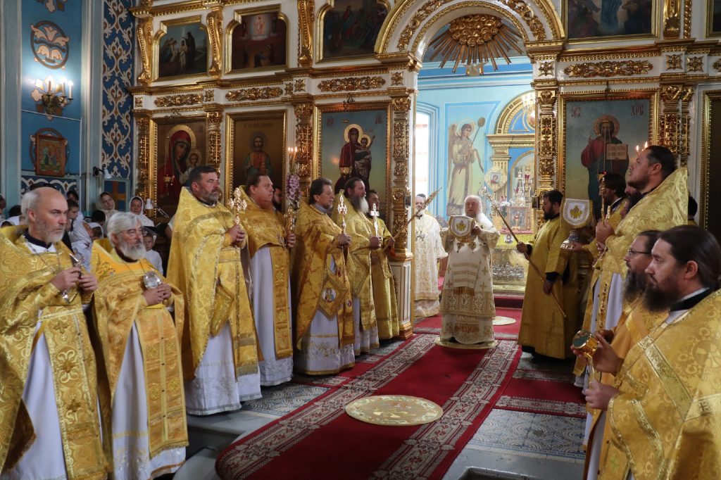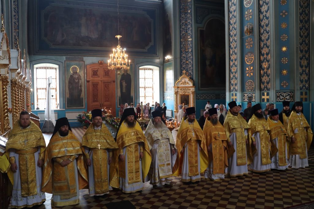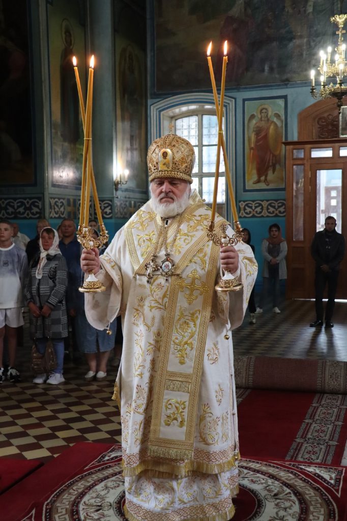 20 августа 2025 года, в среду седмицы 11-й по Пятидесятнице, в день памяти обретения мощей святителя Митрофана, в схиме Макария, первого епископа Воронежского (1832), епископ Кузнецкий и Никольский Назарий, епископ Балашовский и Ртищевский Тарасий, епископ Сердобский и Спасский Митрофан совершили Божественную литургию в кафедральном соборе Архангела Михаила г.Сердобска.