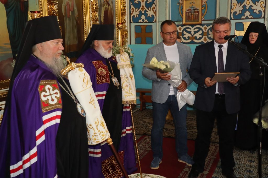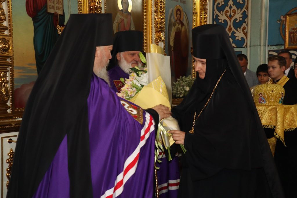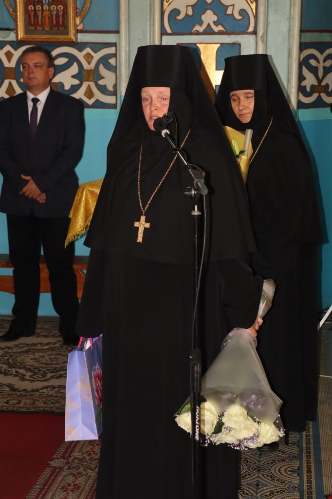 От лица монашествующих епископа Митрофана поздравили игумения Иннокентия (Татаркина), настоятельница Троице-Сканова епархиального женского монастыря, и игумения Варвара (Соколова), настоятельница Скрябинского Вознесенского женского монастыря с.Пограничное Колышлейского района.