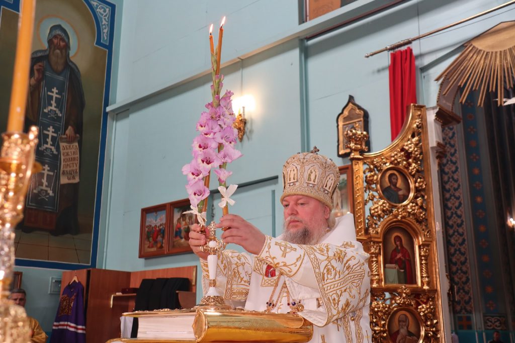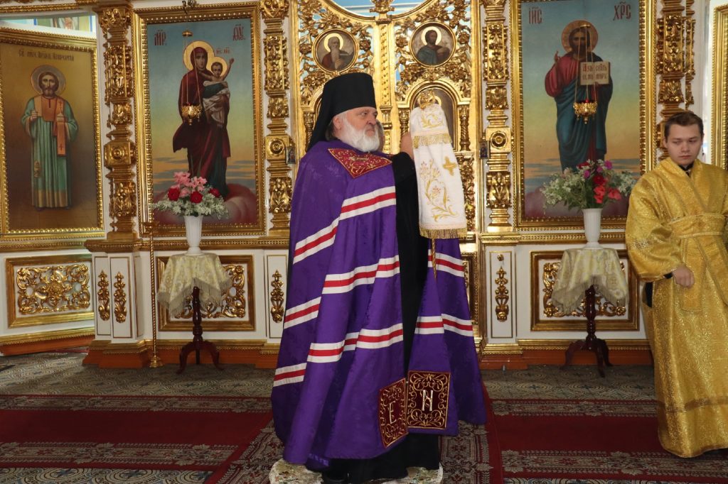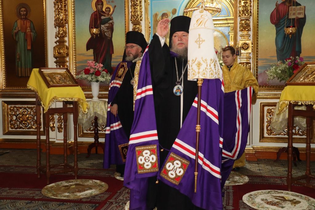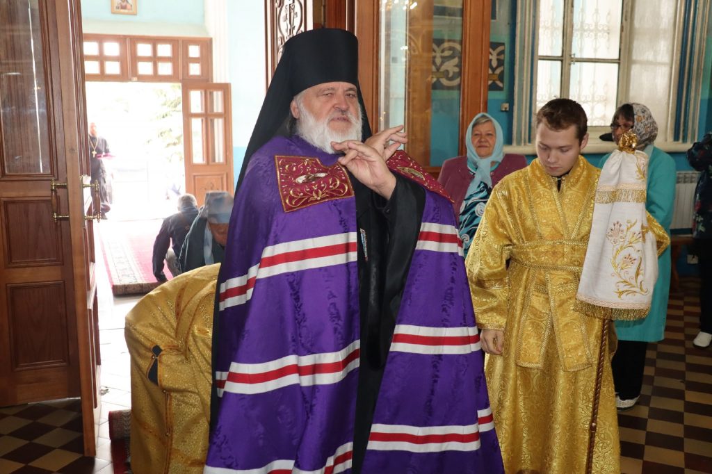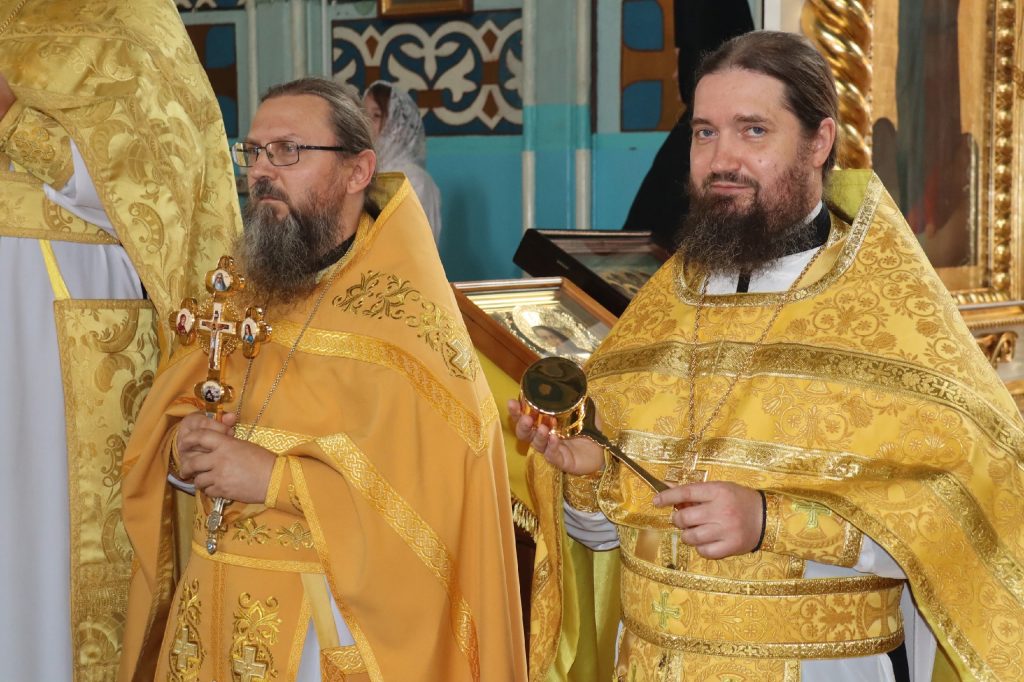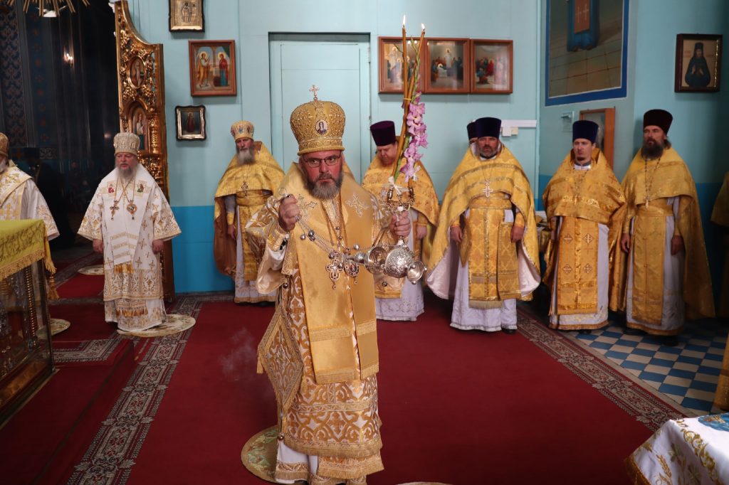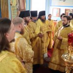 По окончании Литургии Преосвященнейший владыка Назарий, епископ Кузнецкий и Никольский, поздравил епископа Митрофана с Днём Тезоименитства.