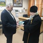 В знак доброго сотрудничества в деле сохранения уникальных материалов по истории родного края Его Преосвященство Владыка Митрофан вручил директору учреждения экземпляры специально подготовленной книги об основных событиях истории главного храма Сердобска «Михайло-Архангельский собор: 80 лет непрерывной молитвы», авторство которой принадлежит клирику Пензенской епархии диакону Евгению Белохвостикову.