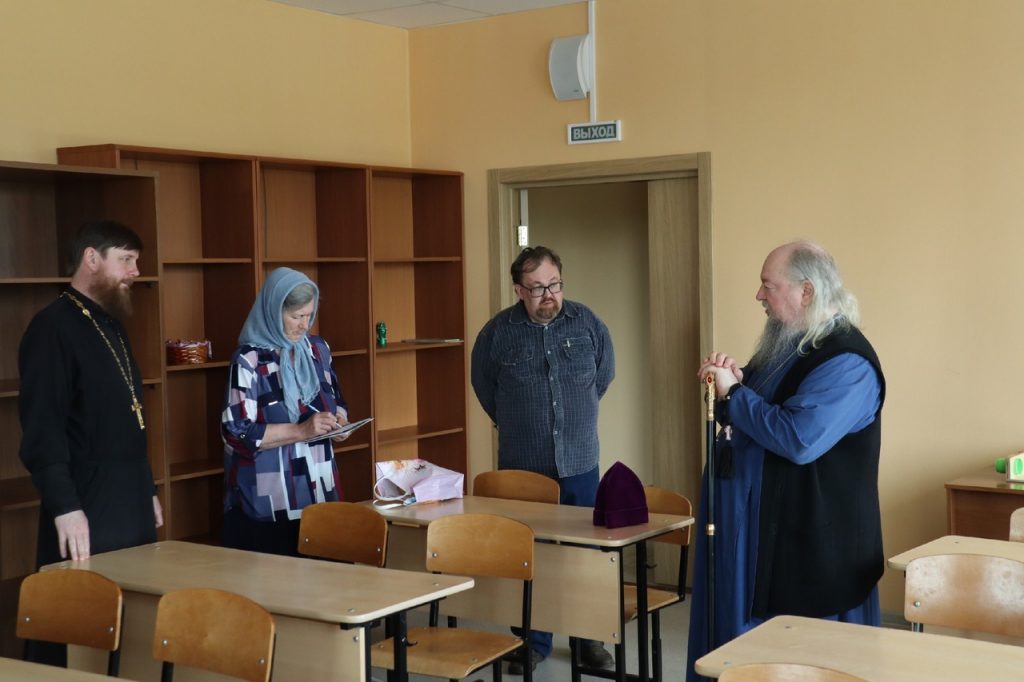 Преосвященного Владыку встретил настоятель Вознесенского собора, благочинный Спасского церковного округа, иерей Сергий Третьяков с сотрудниками собора. Архиерей осмотрел собор и здание готовящегося к открытию Духовно-просветительского центра.