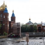 Несмотря на непогоду, продолжилось мероприятие выступлениями артистов под открытым небом.