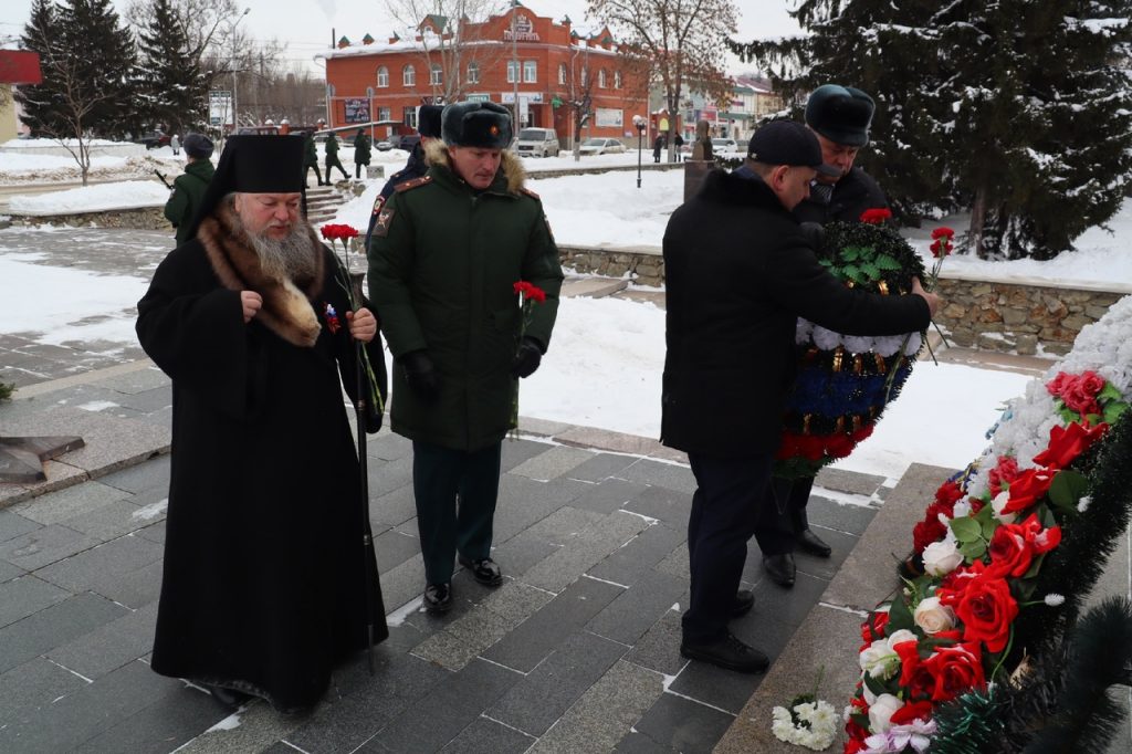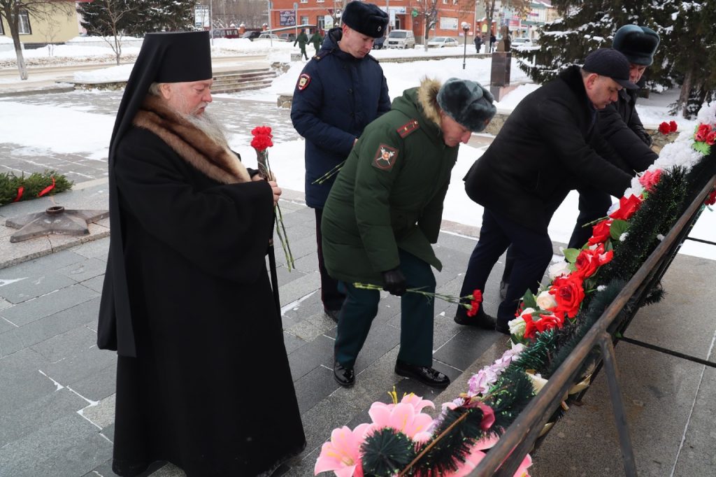 Глава Сердобской епархии вместе с руководством города и района, представителями трудовых коллективов и общественности возложил венки и цветы к мемориалу Вечного огня на центральной площади города Сердобска.