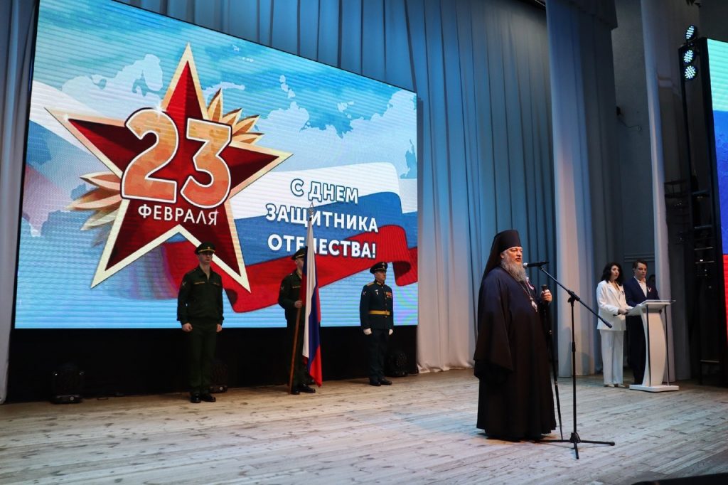 Затем в Доме искусств состоялся традиционный праздничный концерт, посвященный этому знаменательному дню. Со сцены прозвучали теплые поздравления, искренние пожелания и слова благодарности в адрес всех мужчин. Преосвященнейший Владыка Митрофан также поздравил земляков собравшихся в зале с праздником, особо отметив роль защитников Родины и нелегкую их ратную службу сегодня.