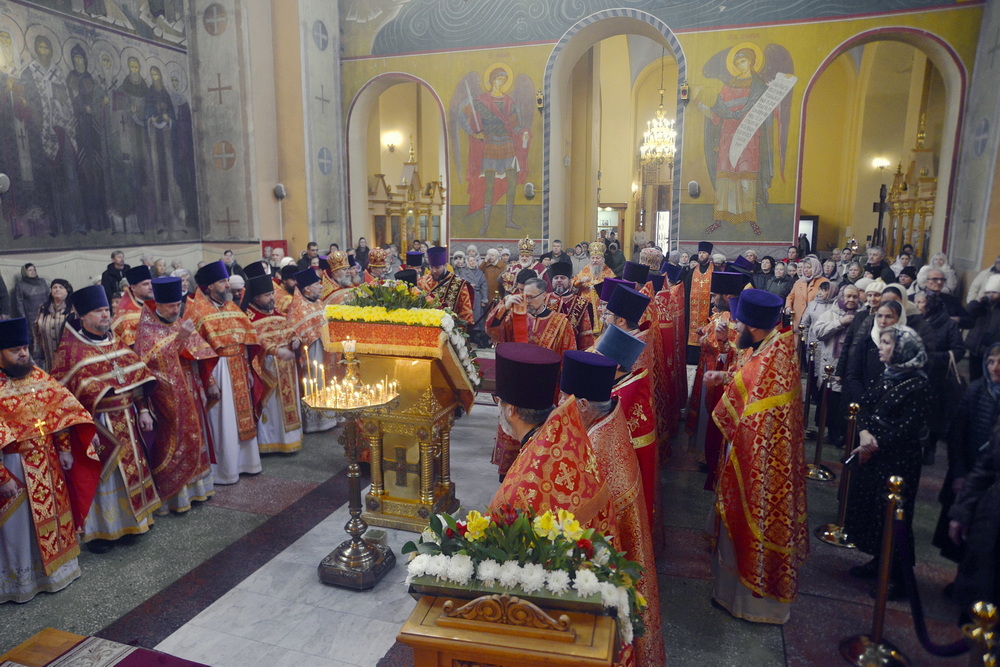За Литургией молилась настоятельница Покровского Шиханского женского монастыря игумения Серафима (Зотова),  гости и прихожане кафедрального храма.