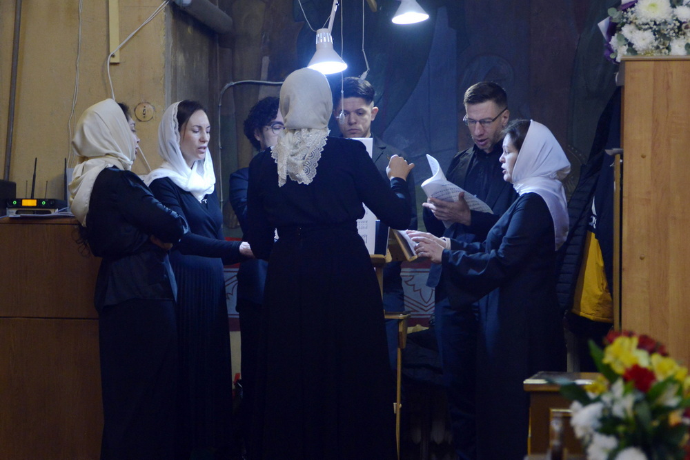 Богослужебные песнопения исполнили: хор кафедрального собора Кузнецка, хор Крестовоздвиженского храма Санкт-Петербурга и Арт-группа «ЛАРГО».