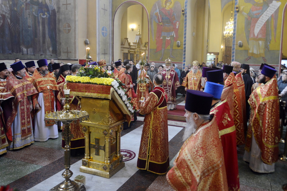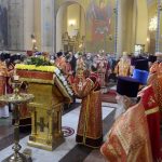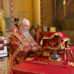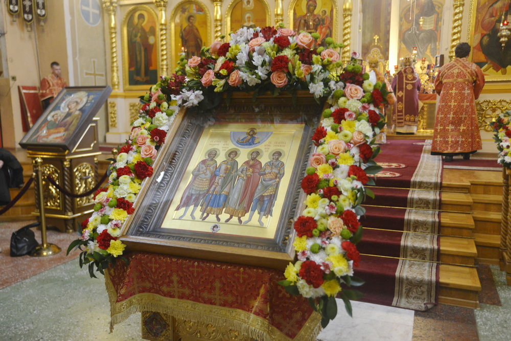 В завершение богослужения было совершено славление святым и прочитана молитва пред иконой со святыми мощами святых мучеников, прославляемым в этот день.