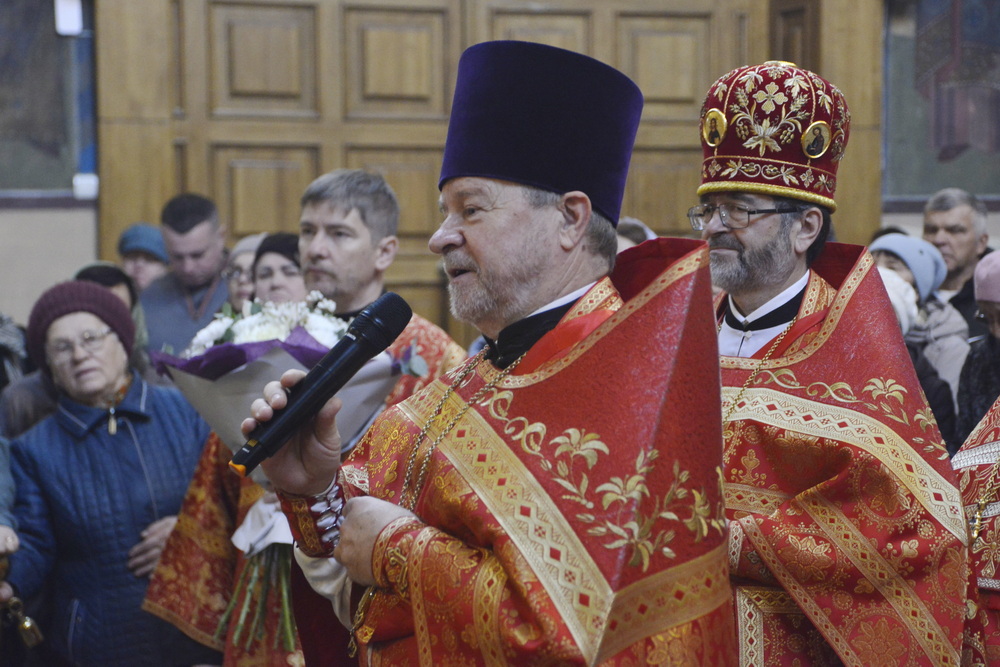 Со словами поздравления обратились: епископ Митрофан и протоиерей Борис Весновский. Иеродиакон Илья (Васильев) зачитал поздравление наместника Александро-Невской лавры Преосвященного Вениамина, епископа Кронштадтского.