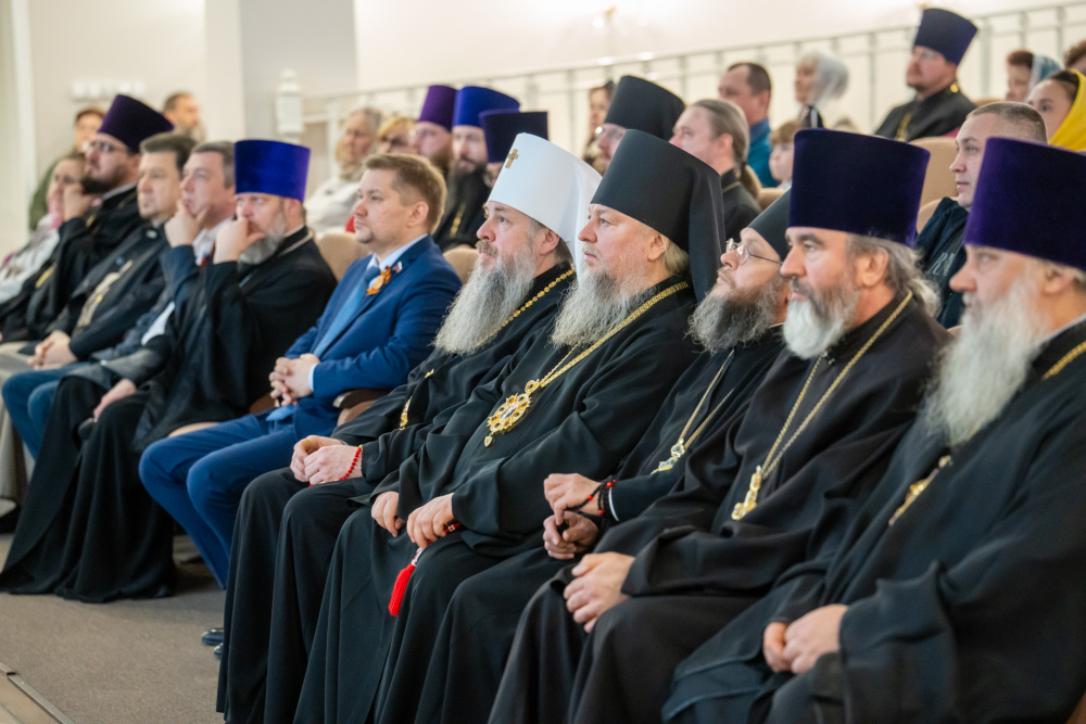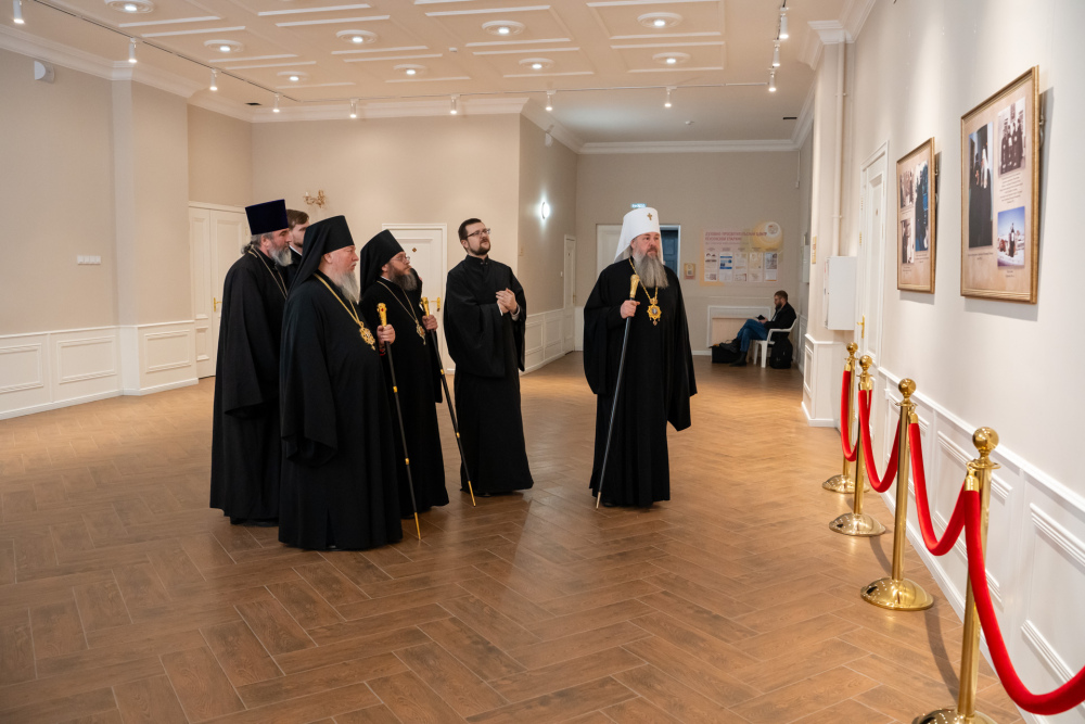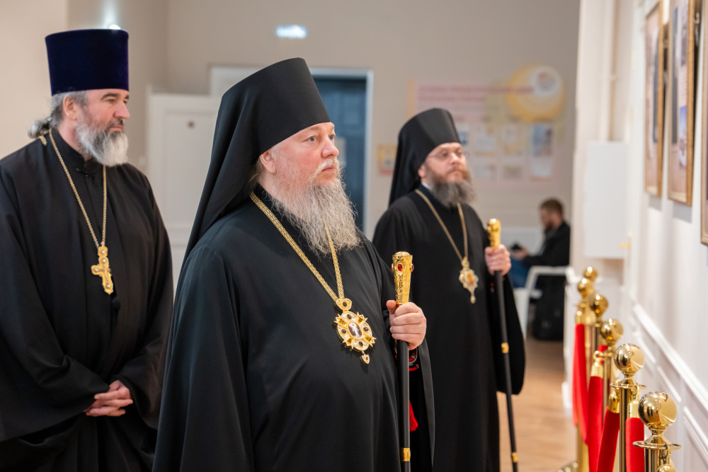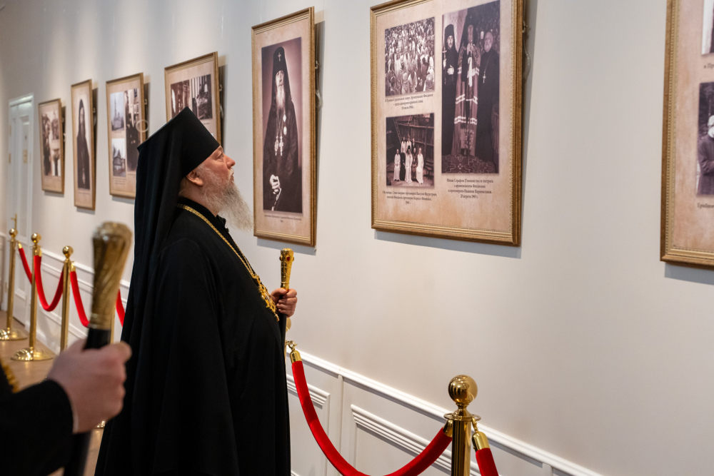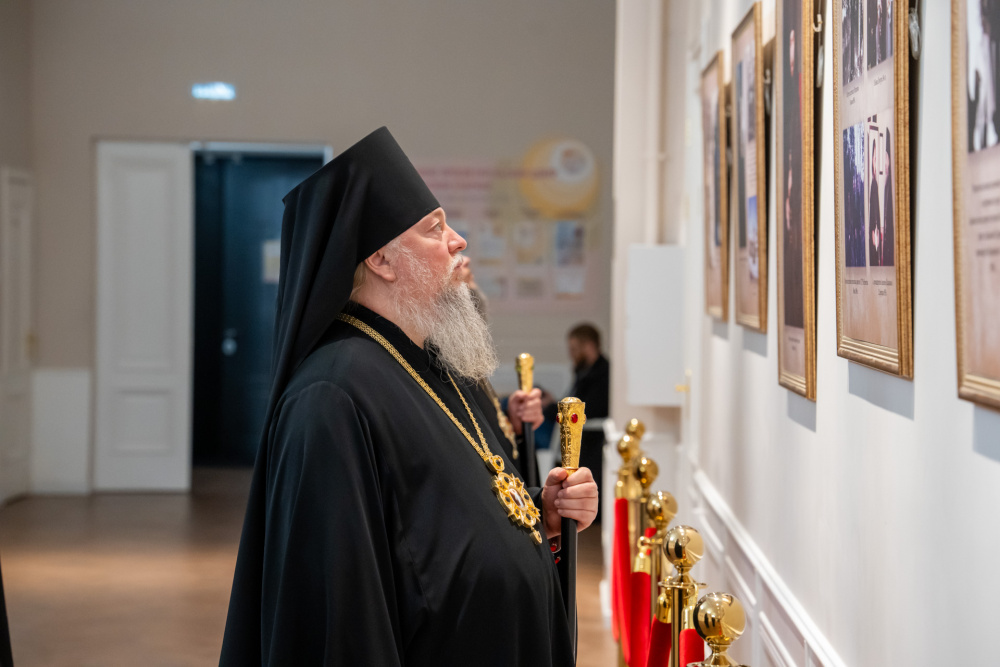 Перед началом торжественной части в фойе духовно-просветительского центра состоялось официальное открытие фотовыставки, посвященной архиепископу Феодосию.