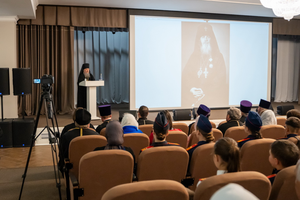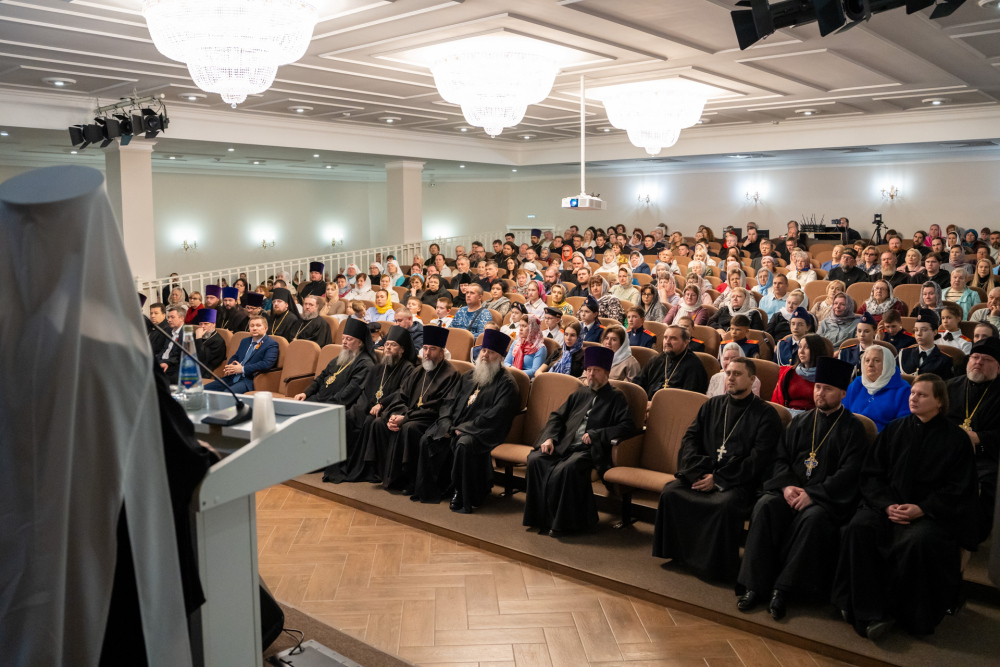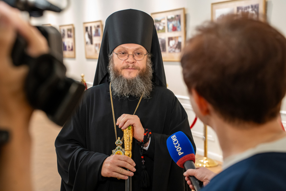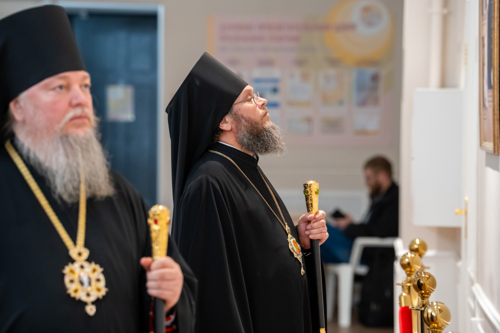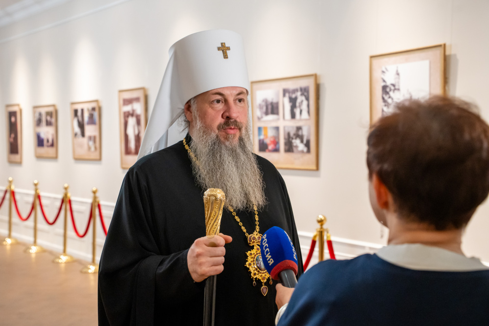 Перед началом торжественной части в фойе духовно-просветительского центра состоялось официальное открытие фотовыставки, посвященной архиепископу Феодосию.