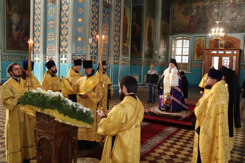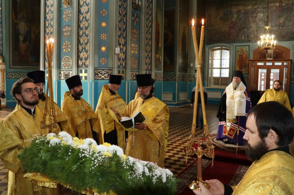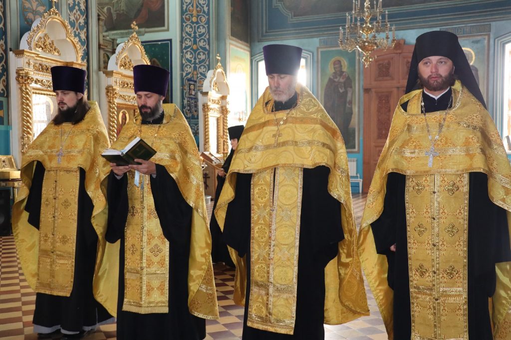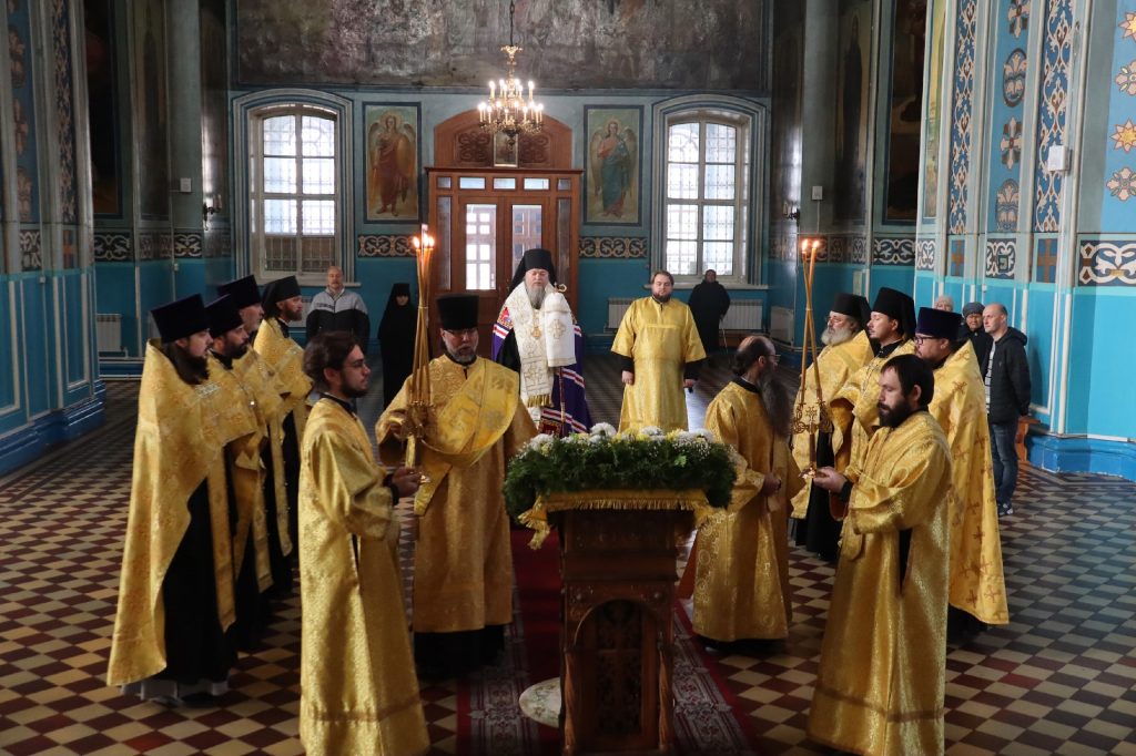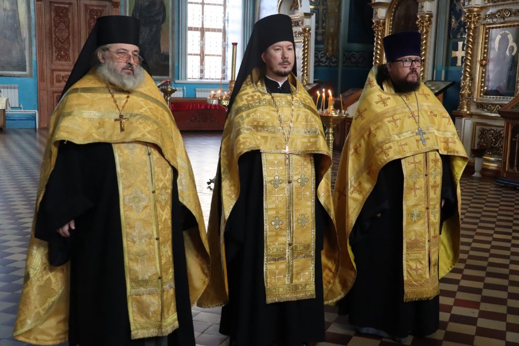 Его Преосвященству сослужили: иеромонах Амвросий (Макаров), врио. секретаря Епархиального Управления; благочинный Сердобского округа иеромонах Тимофей (Рынковой); настоятель храма святого преподобного Сергия Радонежского г.Сердобска иеромонах Вениамин (Гришинов); настоятель церкви Казанской иконы Божией Матери с.Пригородное Сердобского района протоиерей Роман Скворцов; ключарь кафедрального собора Архангела Михаила г.Сердобска, епархиальный древлехранитель иерей Роман Турецких; ; настоятель храма святого равноапостольного князя Владимира г.Сердобска иерей Максим Лосенков; клирик собора и руководитель епархиального отдела религиозного образования и катехизации иерей Александр Федин; клирик кафедрального собора Архангела Михаила г. Сердобска иеродиакон Иннокентий (Ганин); клирик Сердобского благочиния диакон Владимир Эрекайкин.