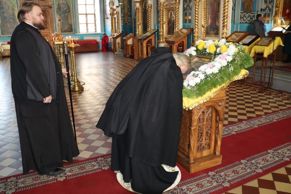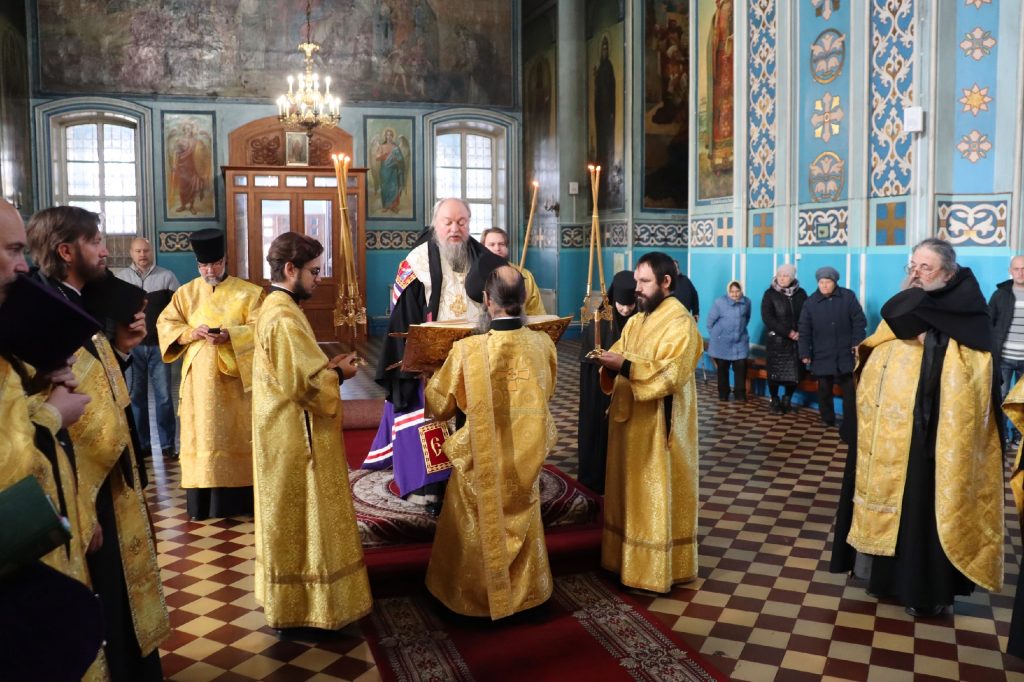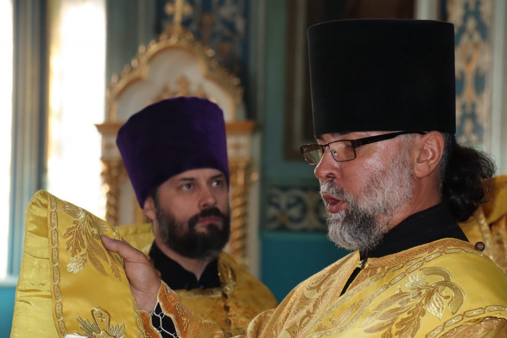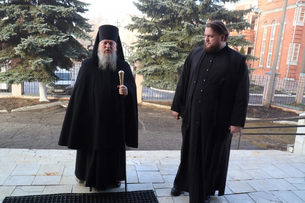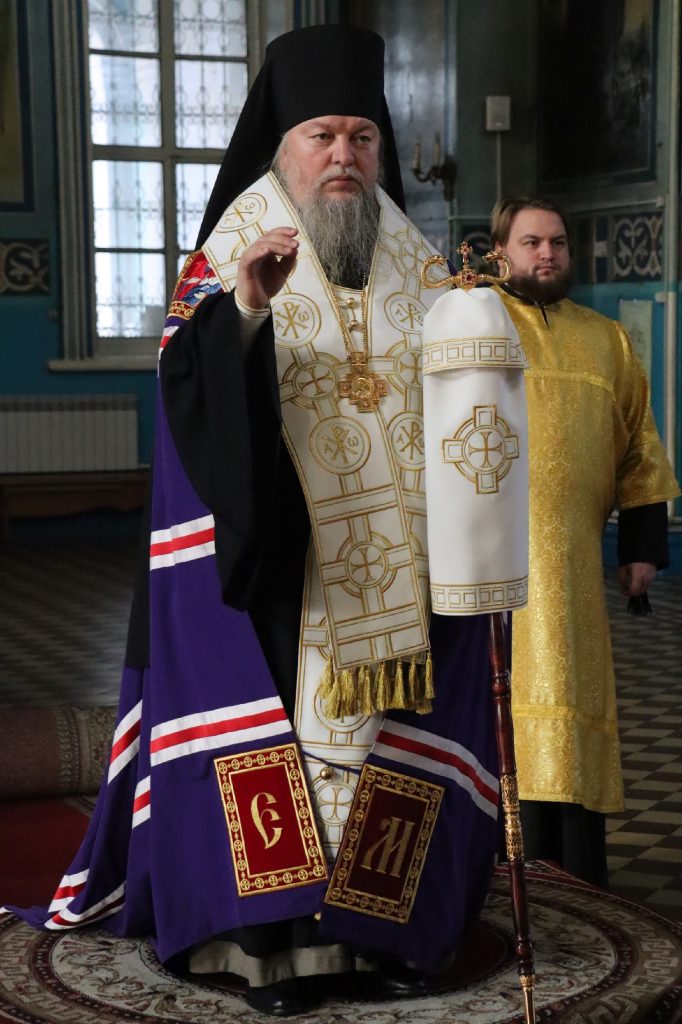 Его Преосвященству сослужили: иеромонах Амвросий (Макаров), врио. секретаря Епархиального Управления; благочинный Сердобского округа иеромонах Тимофей (Рынковой); настоятель храма святого преподобного Сергия Радонежского г.Сердобска иеромонах Вениамин (Гришинов); настоятель церкви Казанской иконы Божией Матери с.Пригородное Сердобского района протоиерей Роман Скворцов; ключарь кафедрального собора Архангела Михаила г.Сердобска, епархиальный древлехранитель иерей Роман Турецких; ; настоятель храма святого равноапостольного князя Владимира г.Сердобска иерей Максим Лосенков; клирик собора и руководитель епархиального отдела религиозного образования и катехизации иерей Александр Федин; клирик кафедрального собора Архангела Михаила г. Сердобска иеродиакон Иннокентий (Ганин); клирик Сердобского благочиния диакон Владимир Эрекайкин.