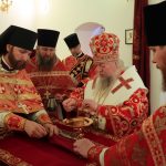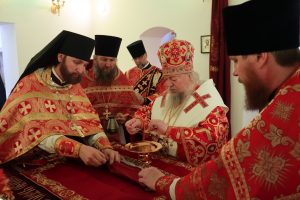 Его Преосвященству сослужили: иеромонах Амвросий (Макаров), протоиерей Вячеслав Абашин, игумен Герман (Петров), клирики Троице – Сканова монастыря.
