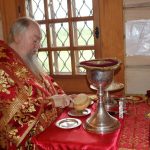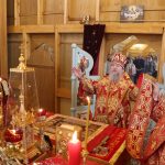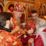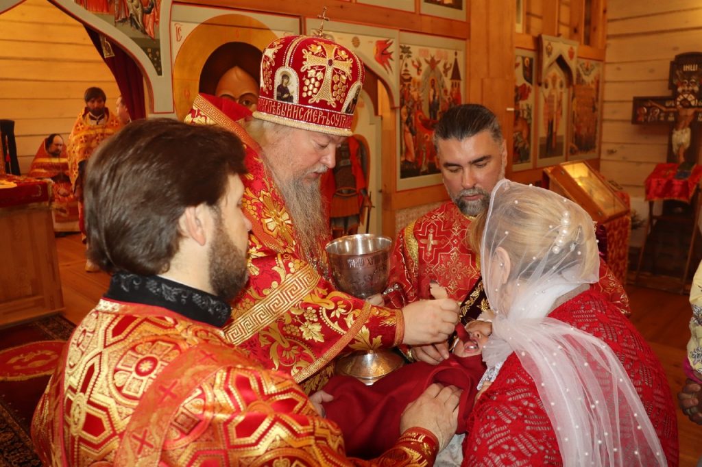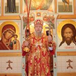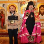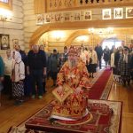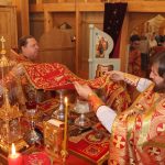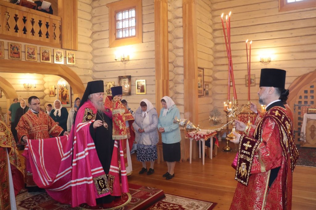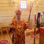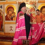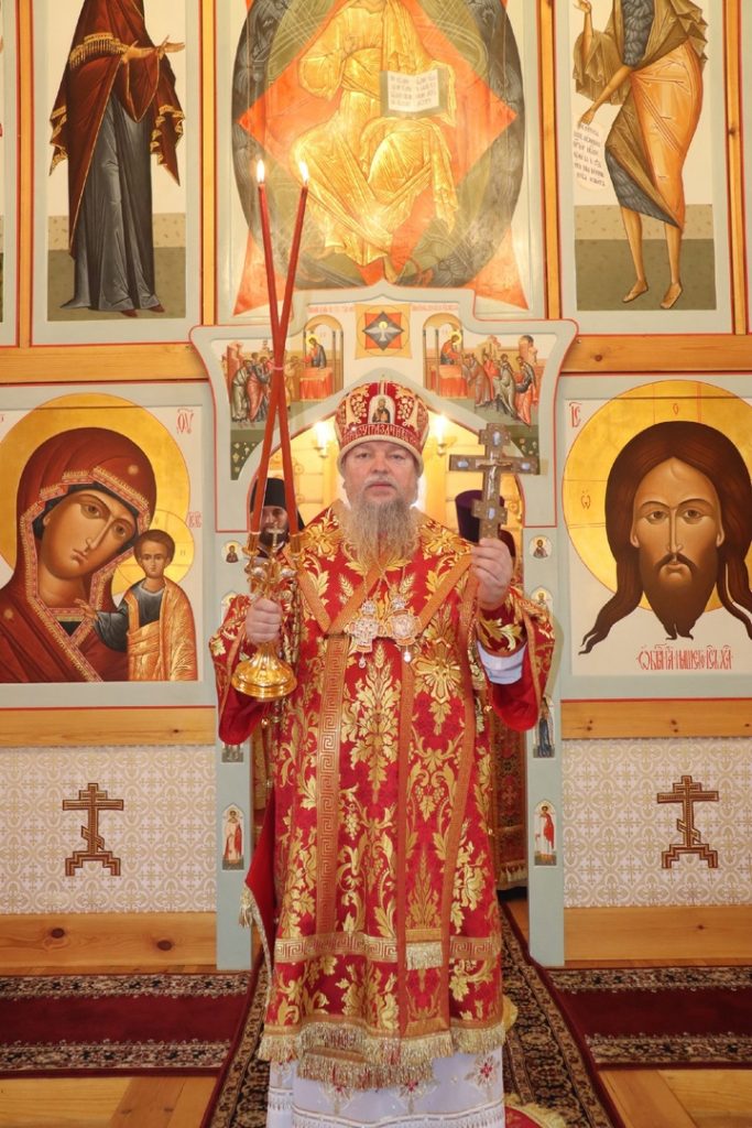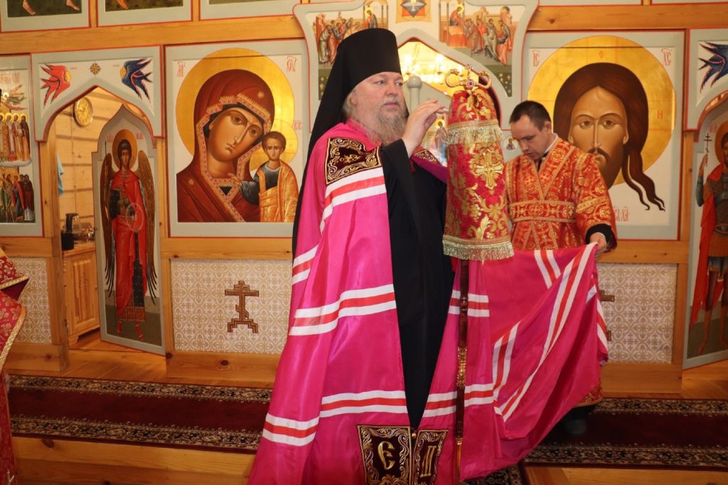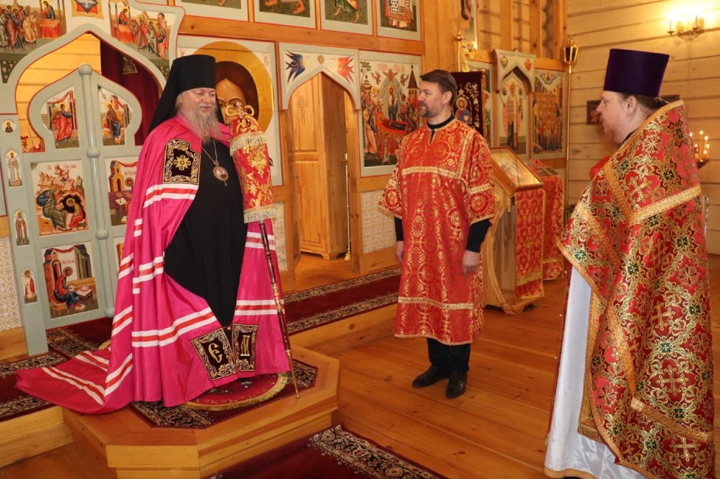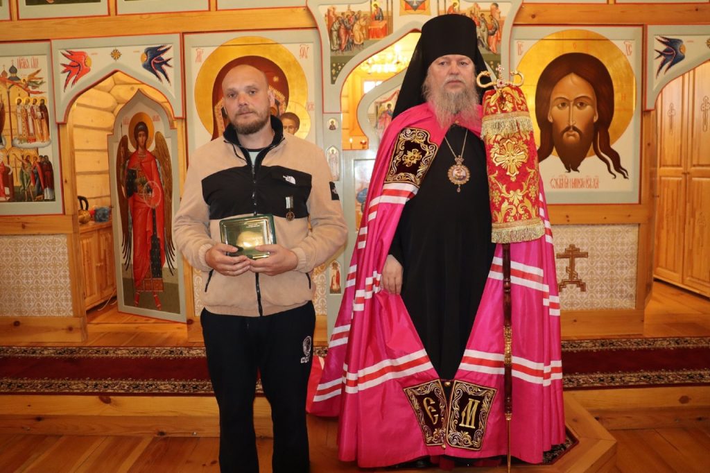 По отпусте Литургии епископ Митрофан поздравил молящихся с праздником Пасхи Христовой, а также наградил епархиальной медалью преподобномученика Пахомия Скановского III степени Желонкина Романа Юрьевича.