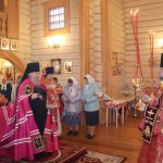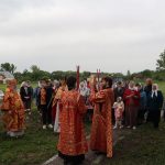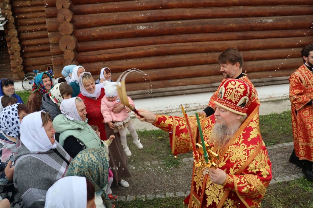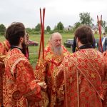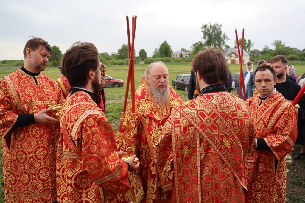 В завершение богослужения Преосвященный Владыка возглавил пасхальный крестный ход и совершил освящение новосооруженного креста для источника, устроенного на территории храма.