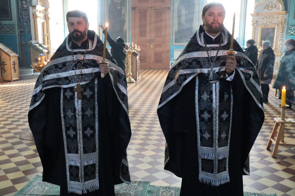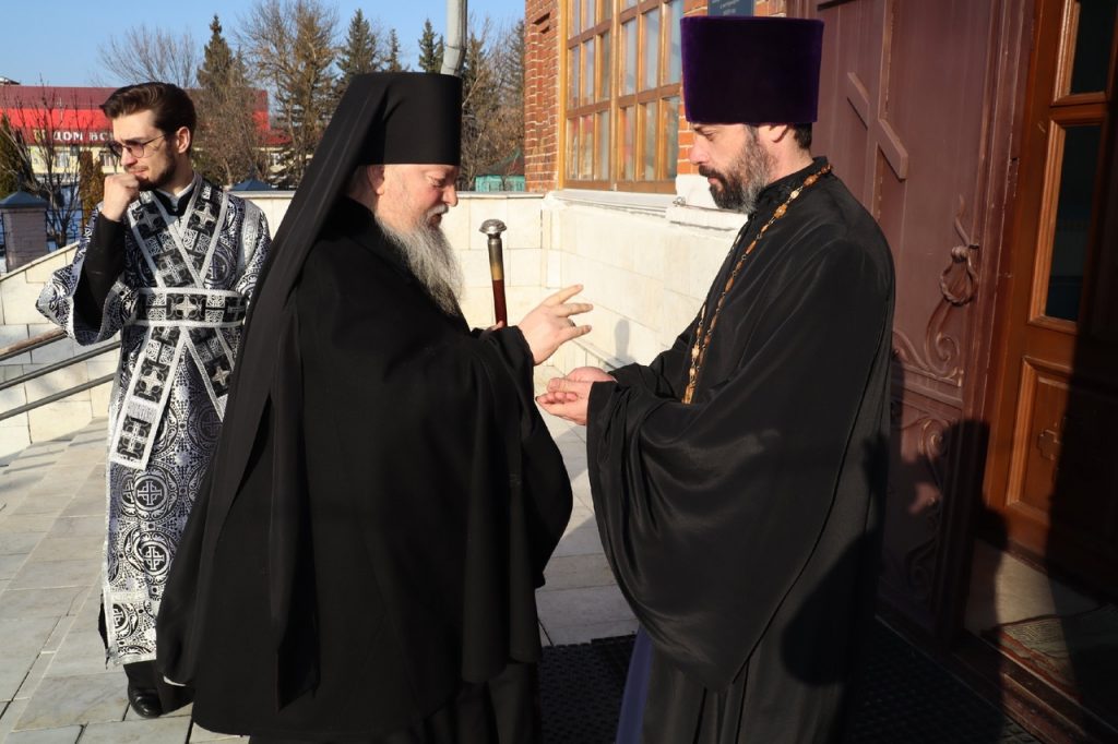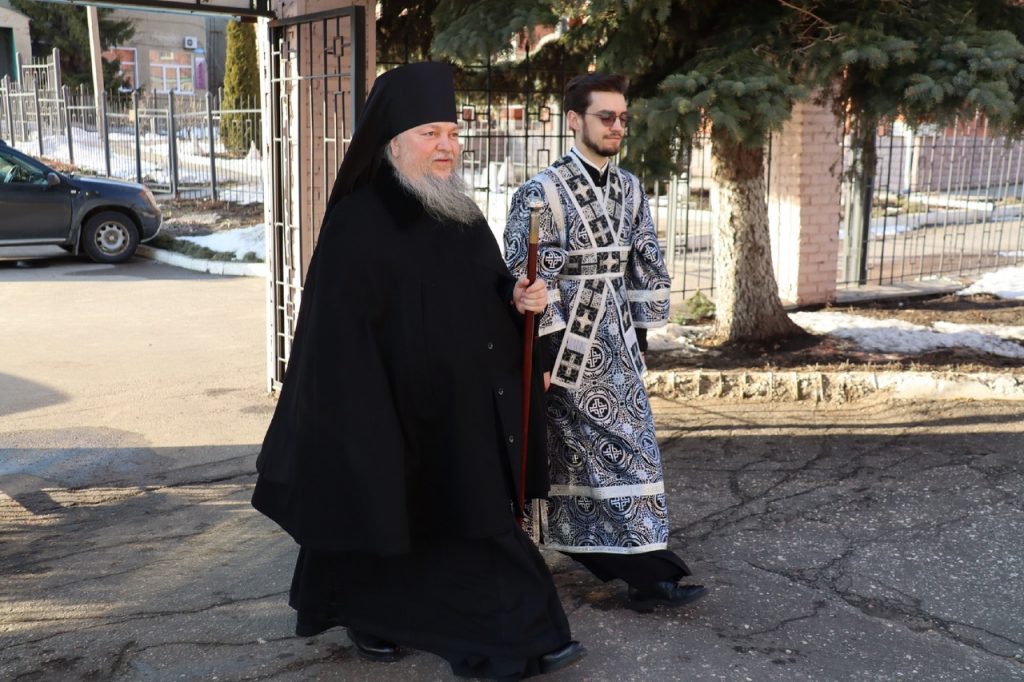 Его Преосвященству сослужили: иеромонах Амвросий (Макаров), врио. секретаря Епархиального Управления; настоятель церкви Казанской иконы Божией Матери с.Пригородное Сердобского района протоиерей Роман Скворцов; ключарь кафедрального собора Архангела Михаила г.Сердобска, епархиальный древлехранитель иерей Роман Турецких; клирик собора и руководитель епархиального отдела религиозного образования и катехизации иерей Александр Федин; иеродиакон Иннокентий (Ганин).