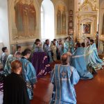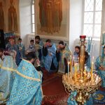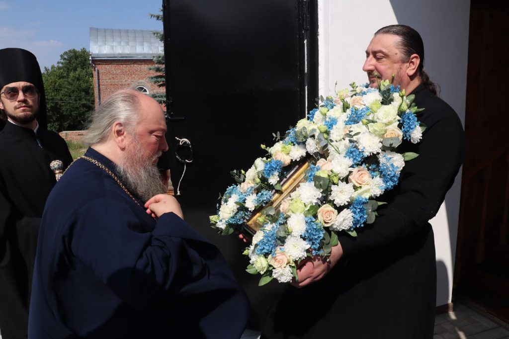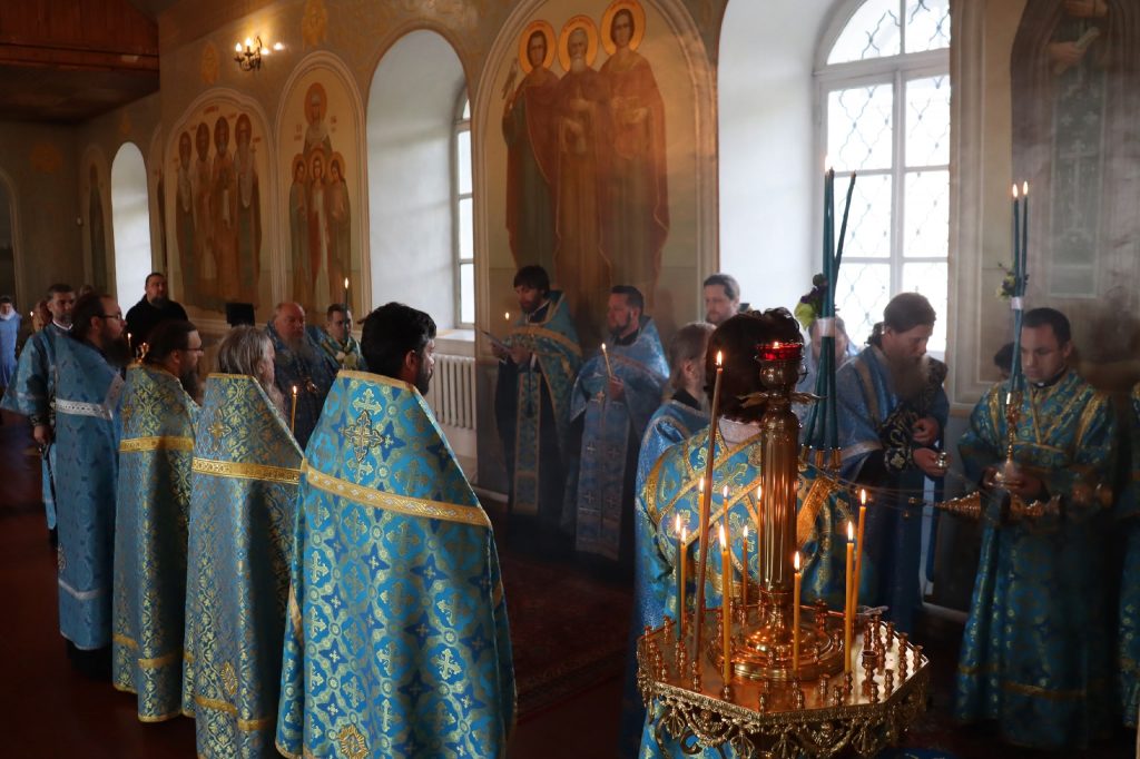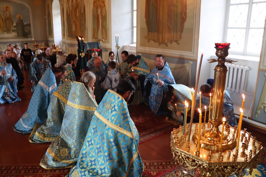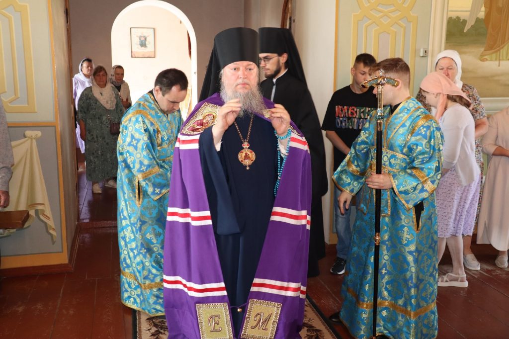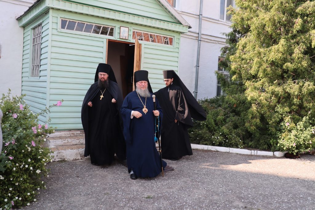 8 июля 2025 года, во вторник седмицы 5-й по Пятидесятнице, накануне праздника Тихвинской иконы Божией Матери (1383), епископ Сердобский и Спасский Митрофан совершил малую вечерню с чтением акафиста Тихвинской иконе Божией Матери в епархиальном Тихвинском Керенском мужском монастыре с.Вадинска.