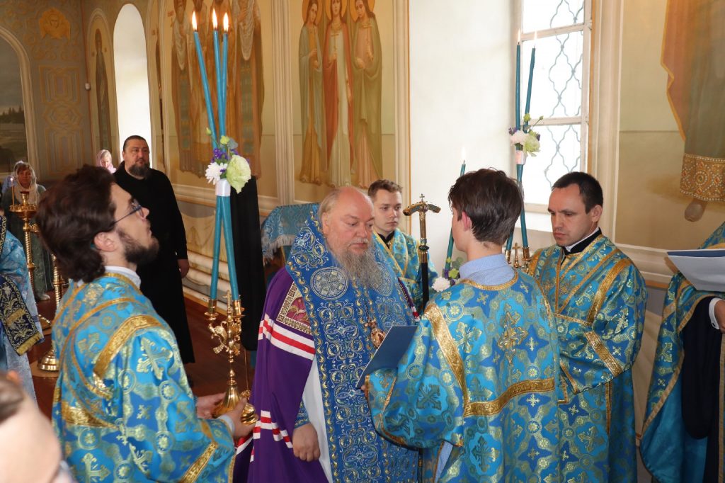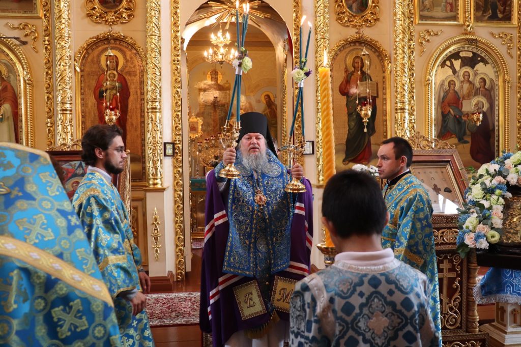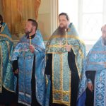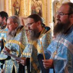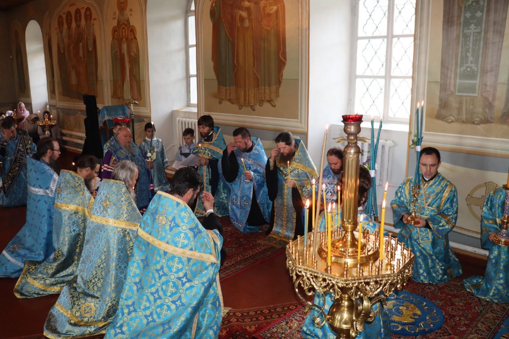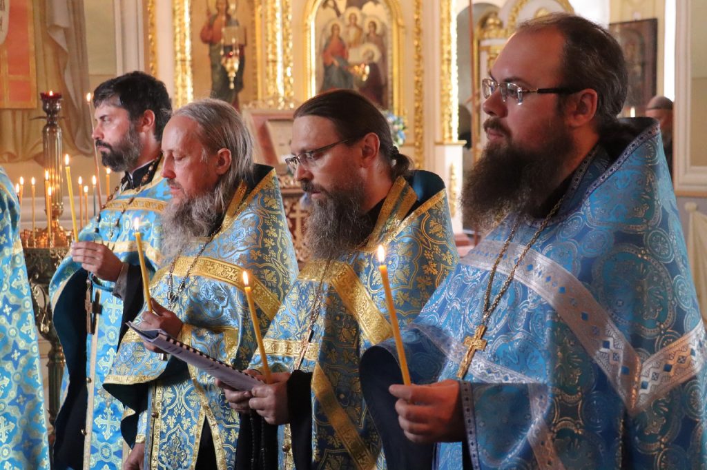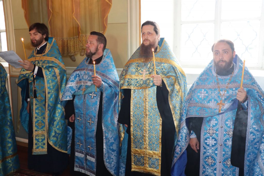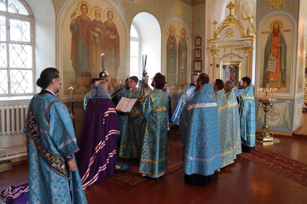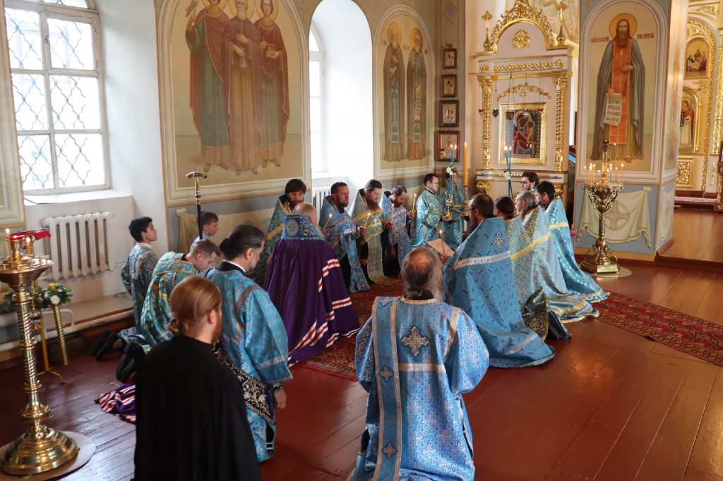Его Преосвященству сослужили: иеромонах Амвросий (Макаров), врио. секретаря Епархиального управления; и. о. наместника епархиального Тихвинского Керенского мужского монастыря с. Вадинска иеромонах Питирим (Толмачев); игумен Серафим (Попов); ключарь кафедрального собора Архангела Михаила г.Сердобска, епархиальный древлехранитель иерей Роман Турецких; настоятель храма Богоявления Господня с. Вадинска иерей Павел Куликов; и.о.наместника Сканова Пещерного мужского монастыря прпп. Антония и Феодосия Киево-Печерских с. Сканово Наровчатского района иеромонах Ювеналий (Жучков); братия обители во священном сане; клирик кафедрального собора Архангела Михаила г. Сердобска иеродиакон Иннокентий (Ганин).