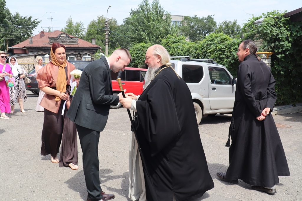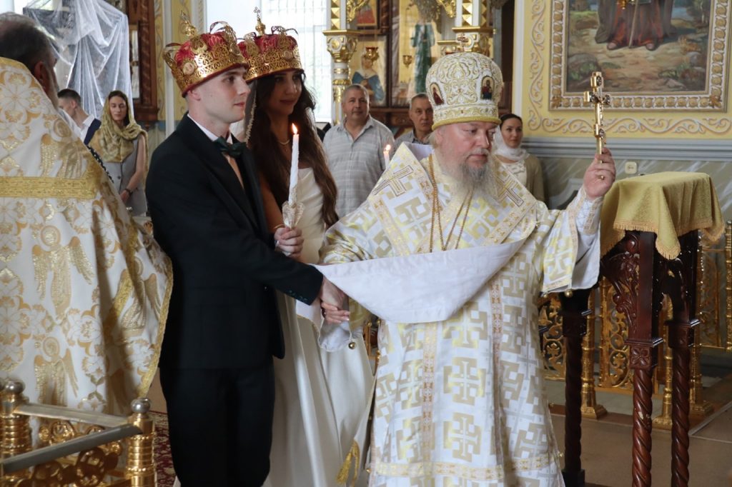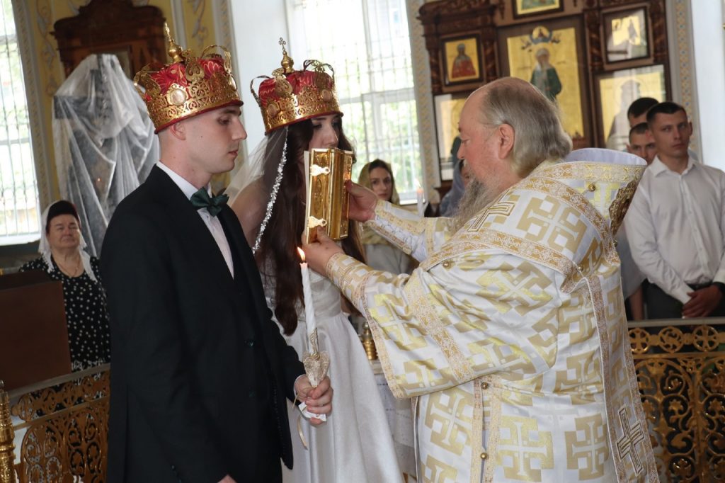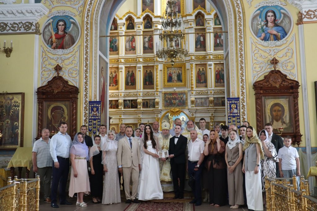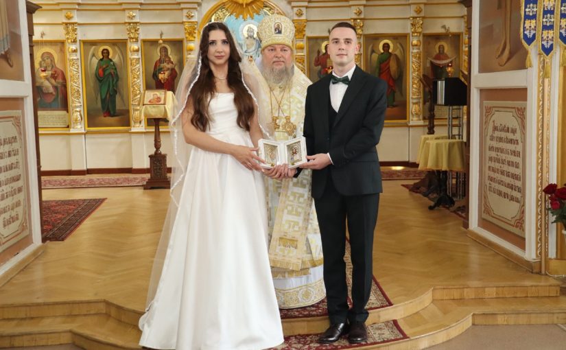 По окончании богослужения епископ Митрофан благословил новобрачных образами Спасителя и Божией Матери и вручил молодым свидетельство о венчании.