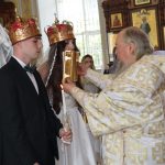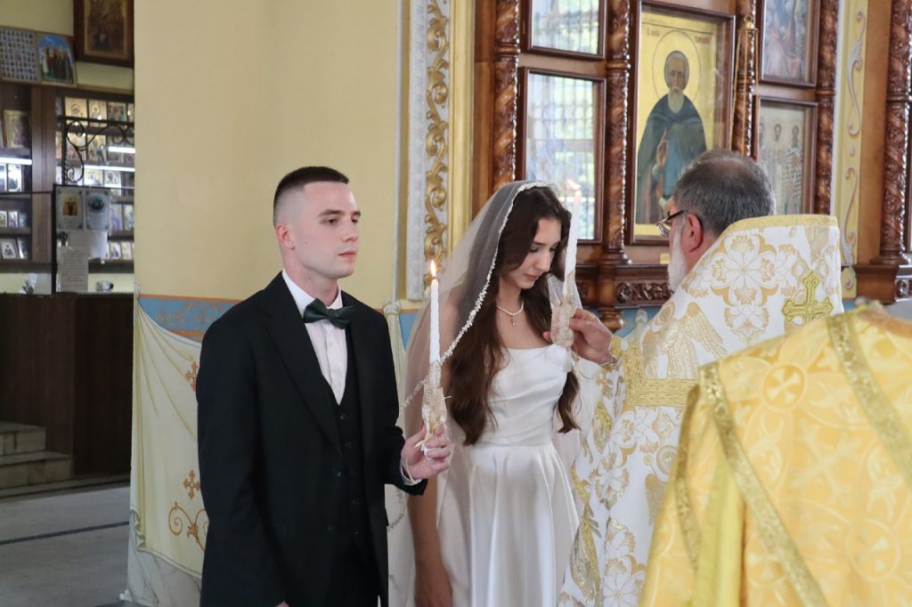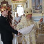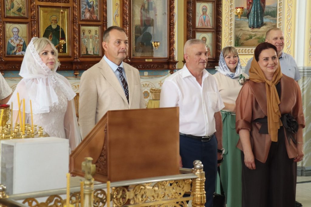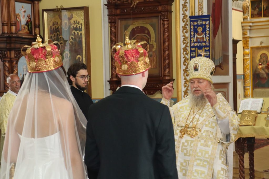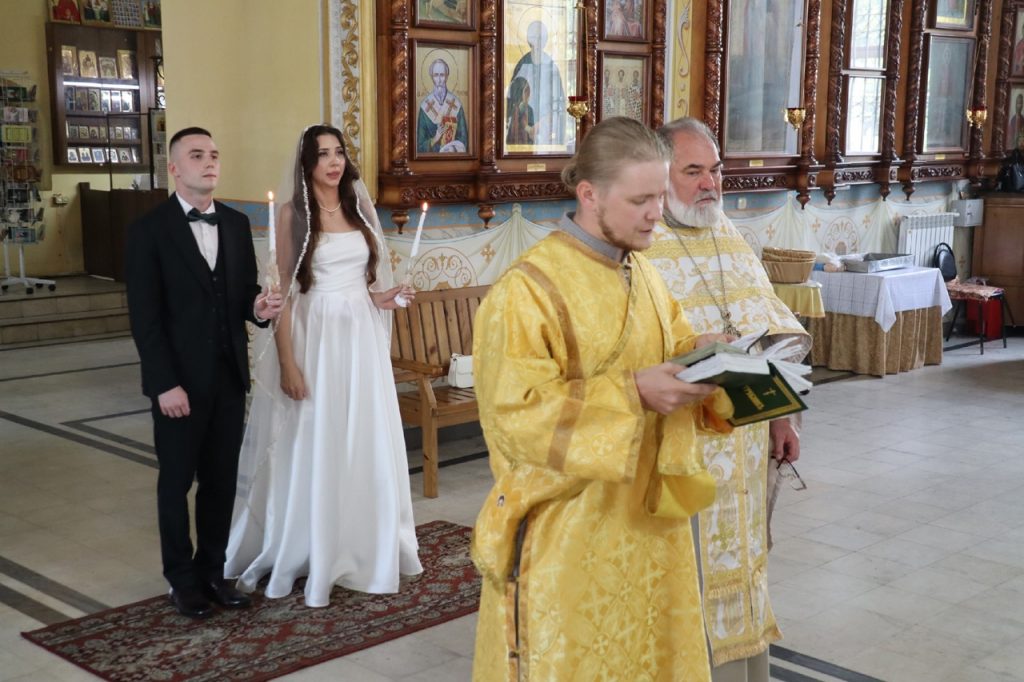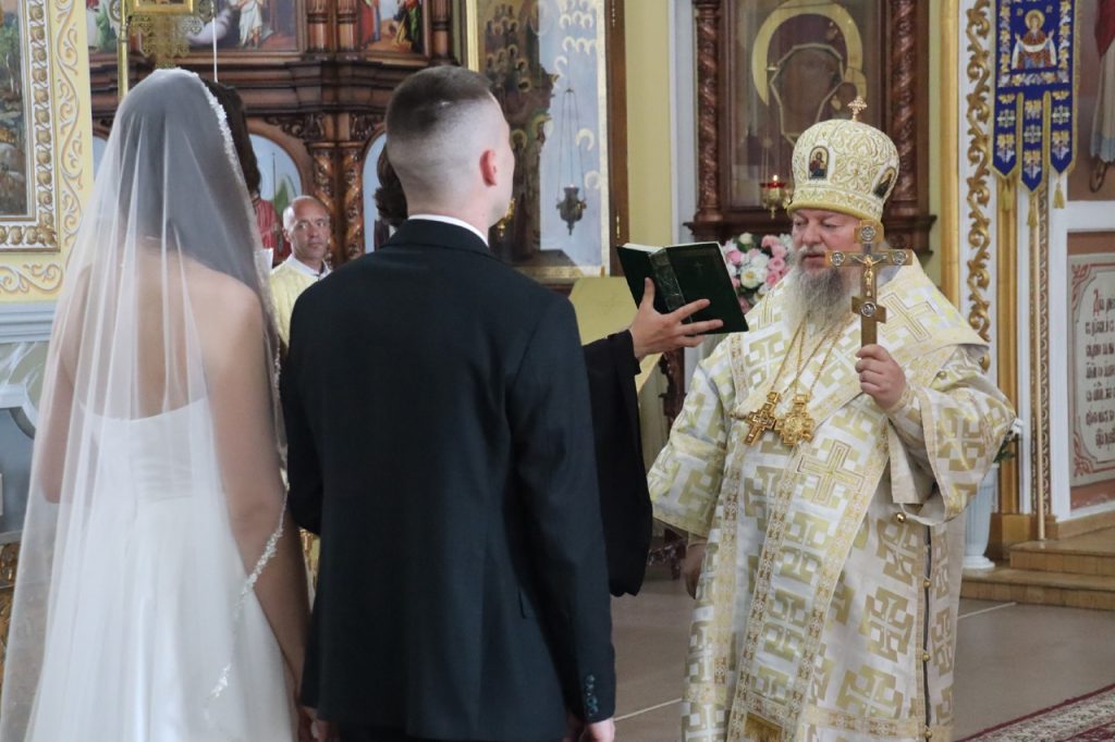 По окончании богослужения епископ Митрофан благословил новобрачных образами Спасителя и Божией Матери и вручил молодым свидетельство о венчании.