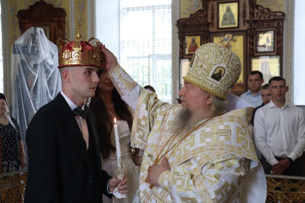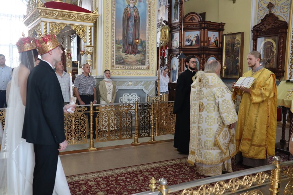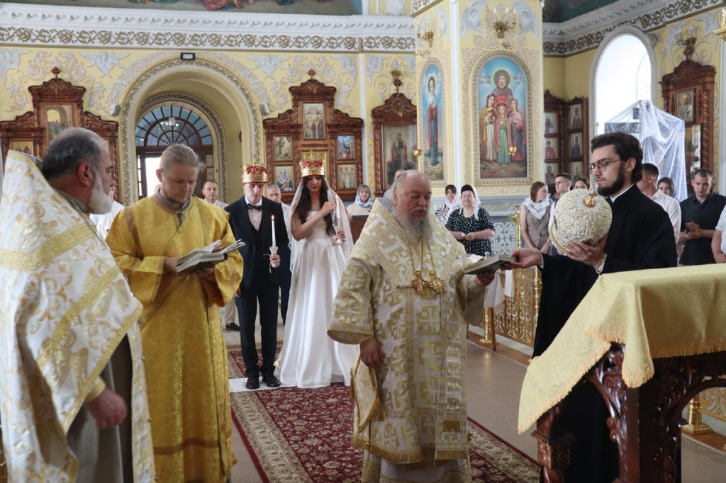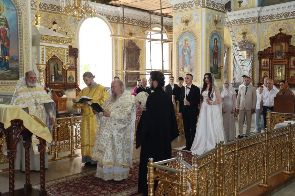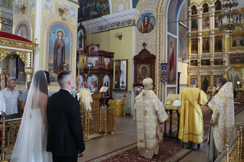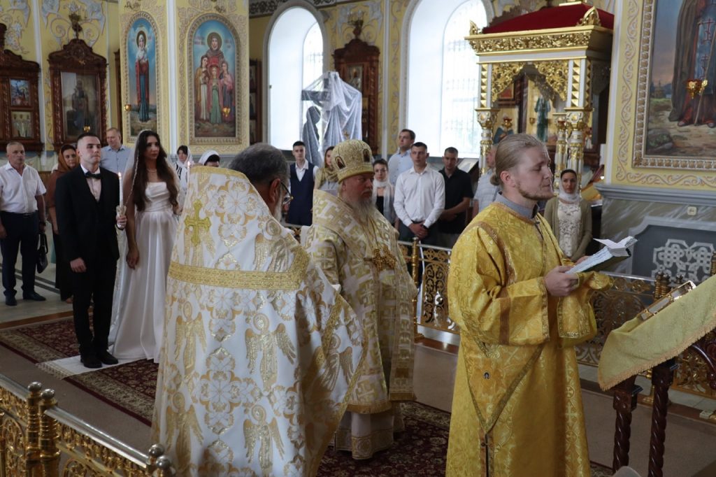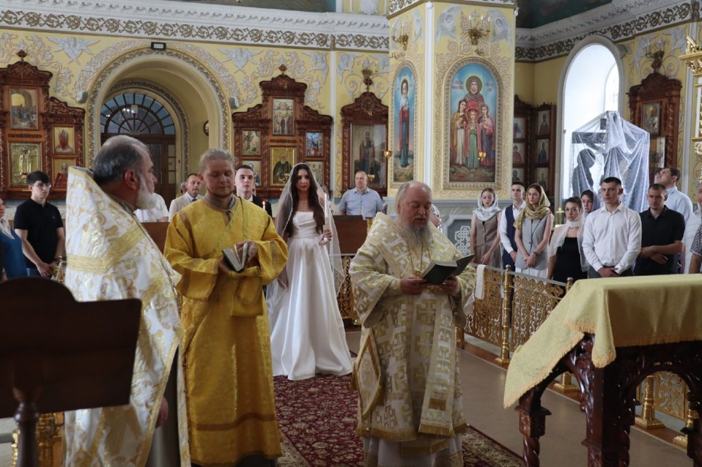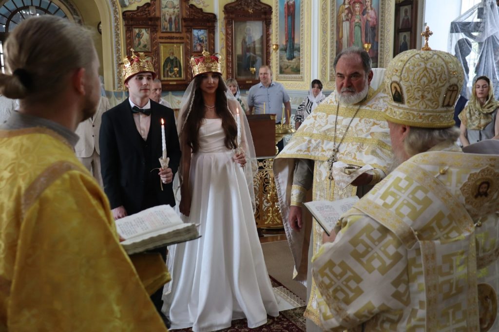 13 июля 2025 года, в Неделю 5-ю по Пятидесятнице, в день празднования собора славных и всехвальных 12-ти апостолов, епископ Сердобский и Спасский Митрофан совершил Таинство Венчания над супружеской парой, Владимиром Качуриным и Ангелиной Ериной, в Покровском архиерейском соборе г.Пензы.