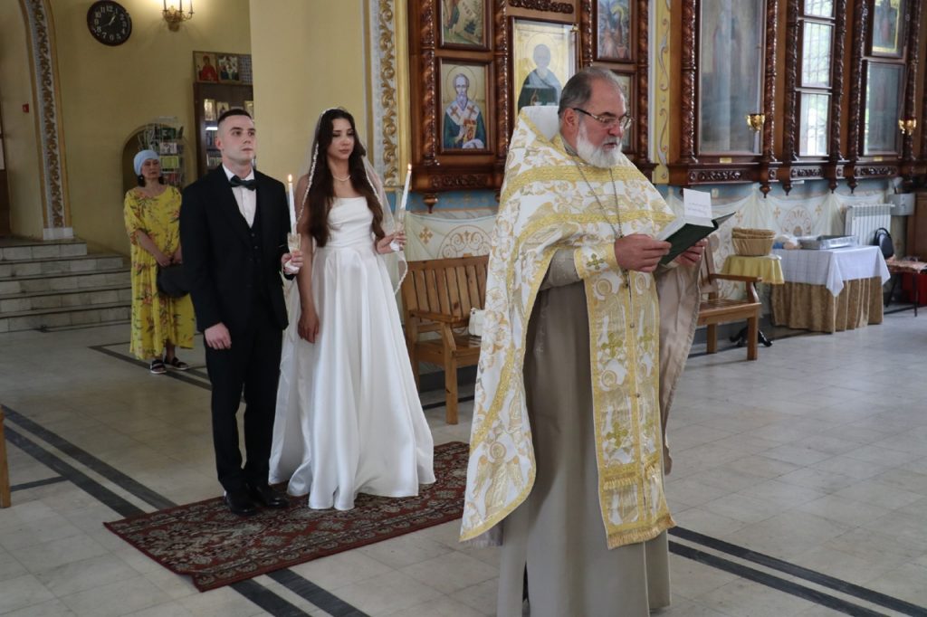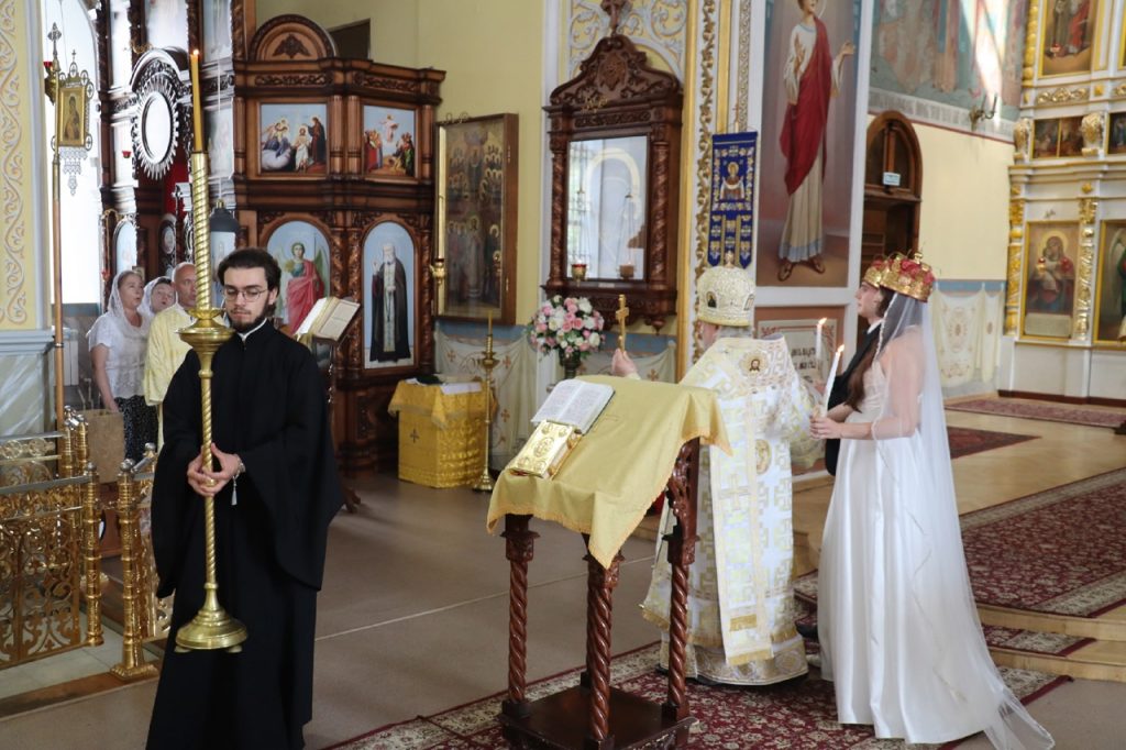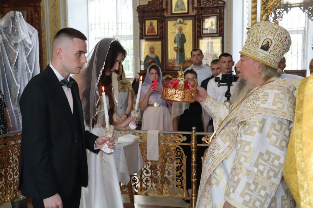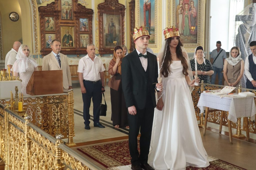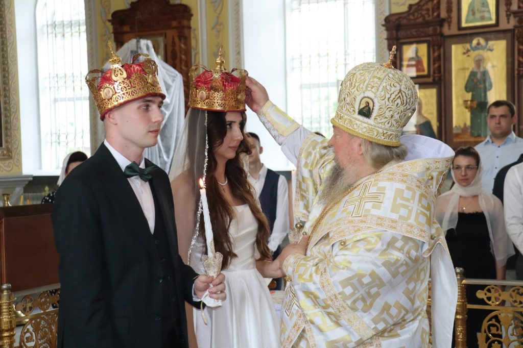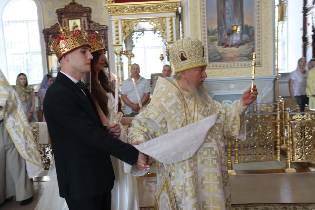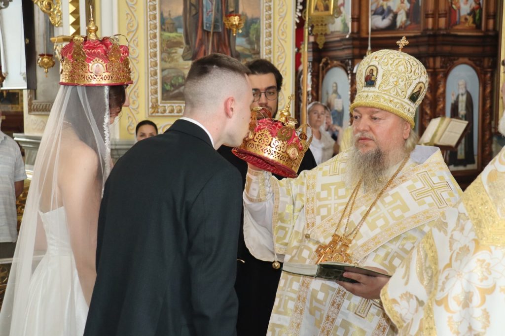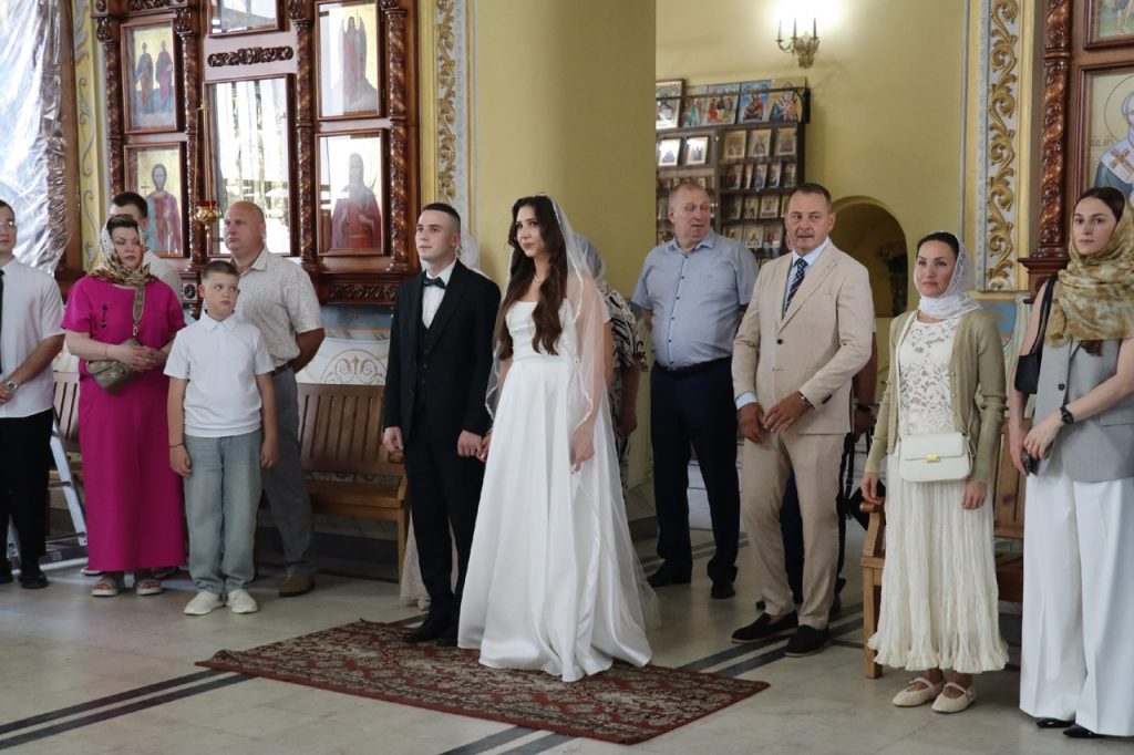 13 июля 2025 года, в Неделю 5-ю по Пятидесятнице, в день празднования собора славных и всехвальных 12-ти апостолов, епископ Сердобский и Спасский Митрофан совершил Таинство Венчания над супружеской парой, Владимиром Качуриным и Ангелиной Ериной, в Покровском архиерейском соборе г.Пензы.