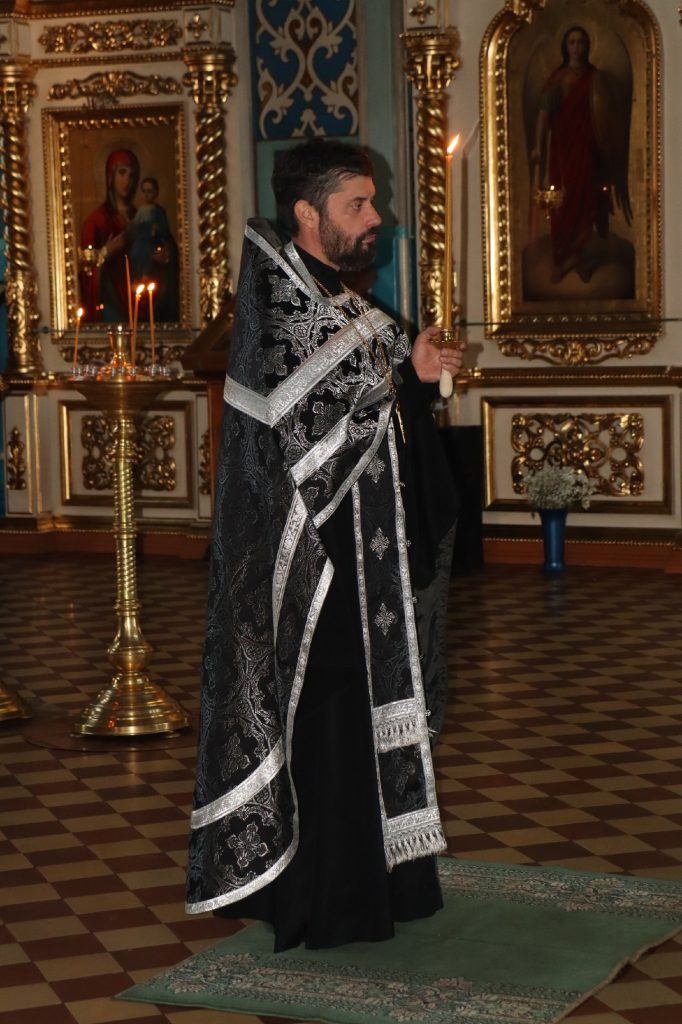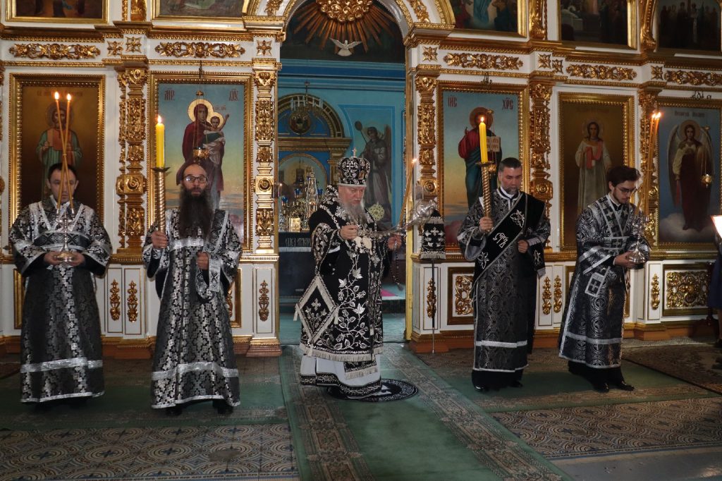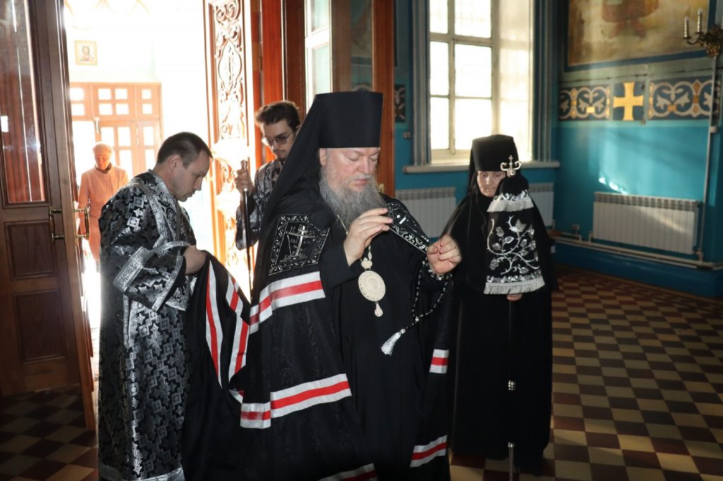 Его Преосвященству сослужили: иеромонах Амвросий (Макаров), врио. секретаря Епархиального Управления; ключарь кафедрального собора Архангела Михаила г.Сердобска, епархиальный древлехранитель иерей Роман Турецких; клирик собора и руководитель епархиального отдела религиозного образования и катехизации иерей Александр Федин; иеродиакон Иннокентий (Ганин), диакон Владимир Эрекайкин.