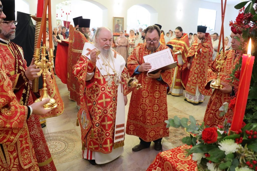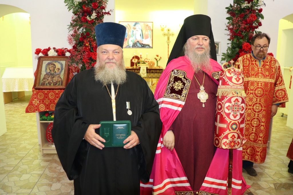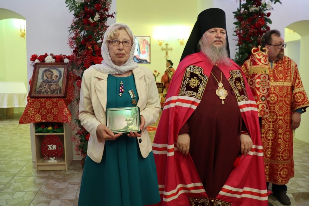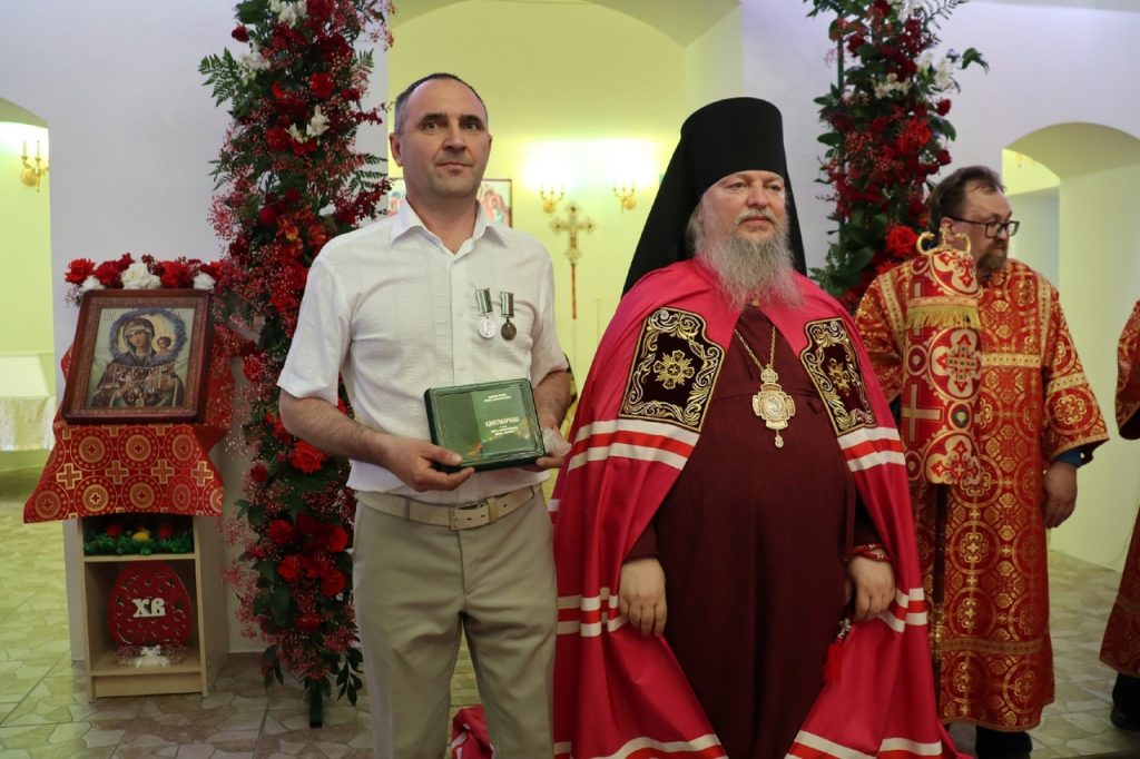 Преосвященнейший Владыка по случаю освящения придельного храма вручил епархиальные награды:
