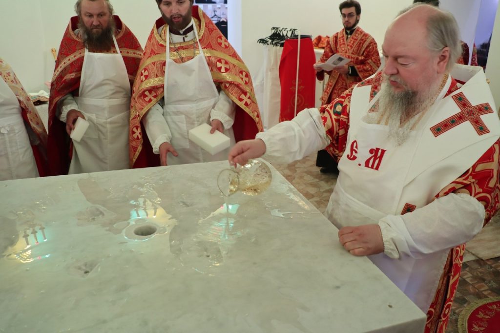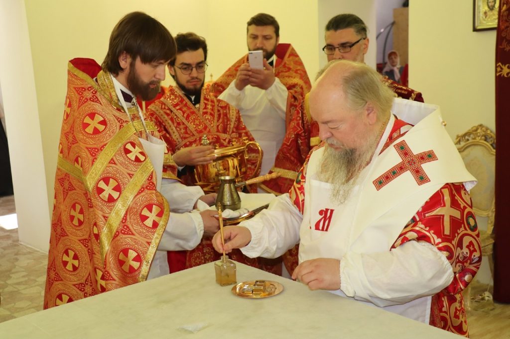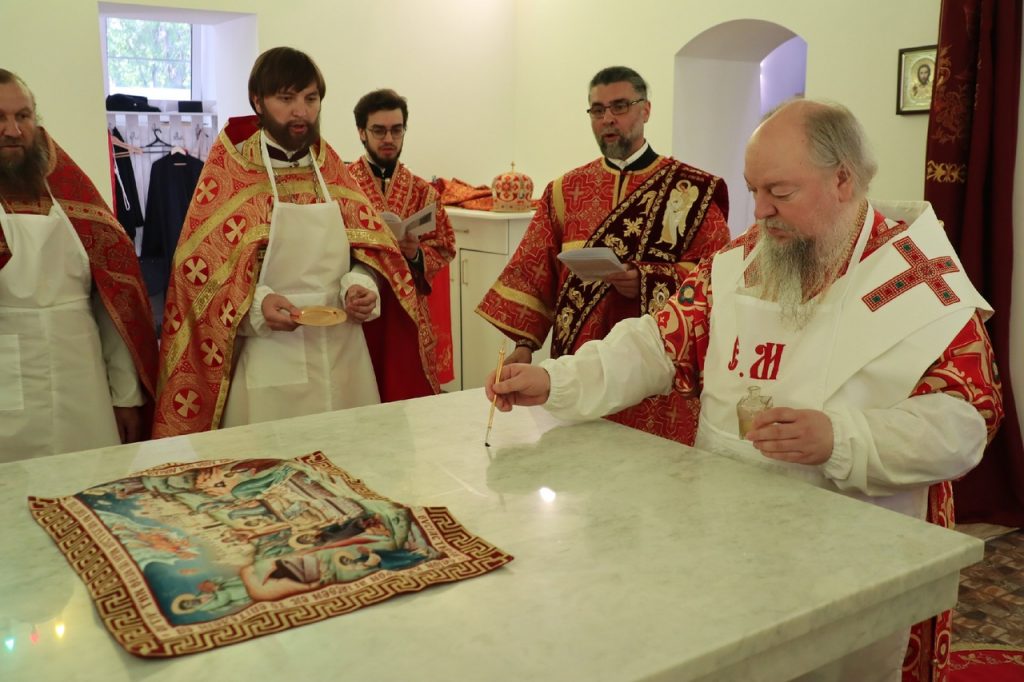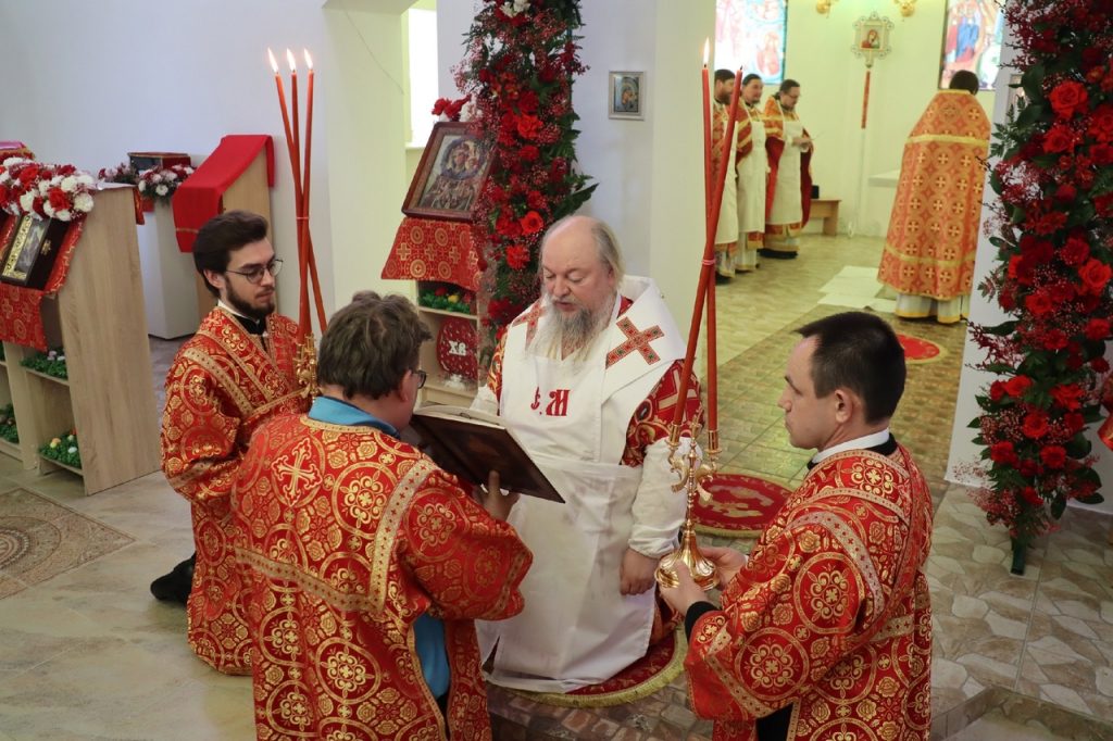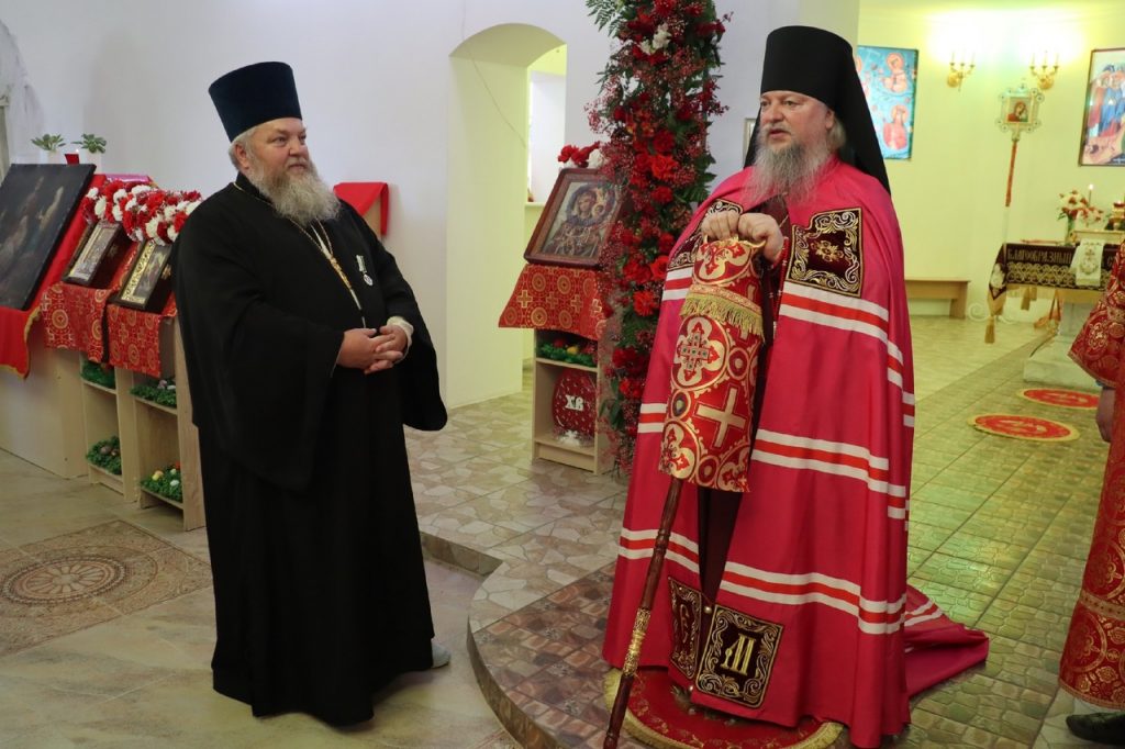 Его Преосвященству сослужили: врио. секретаря Епархиального Управления, иеромонах Амвросий (Макаров); настоятель Михайло-Архангельского храма с. Баранчеевка протоиерей Сергий Агейкин; клирик Краснослободской епархии, протоиерей Александр Чикиров; благочинный Спасского церковного округа, настоятель Вознесенского собора г. Спасска, иерей Сергий Третьяков; благочинный Вадинского церковного округа, настоятель храма Архангела Михаила с. Вадинска, иерей Константин Проскуряков; настоятель храма Воскресения Христова г. Спасска иерей Иоанн Голованов; клирик Спасского благочиния, иерей Артемий Тодчук; клирик кафедрального собора Архангела Михаила г. Сердобска, иеродиакон Иннокентий (Ганин).
