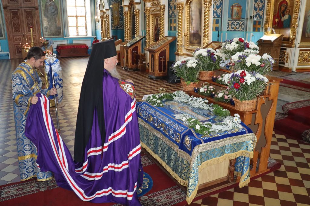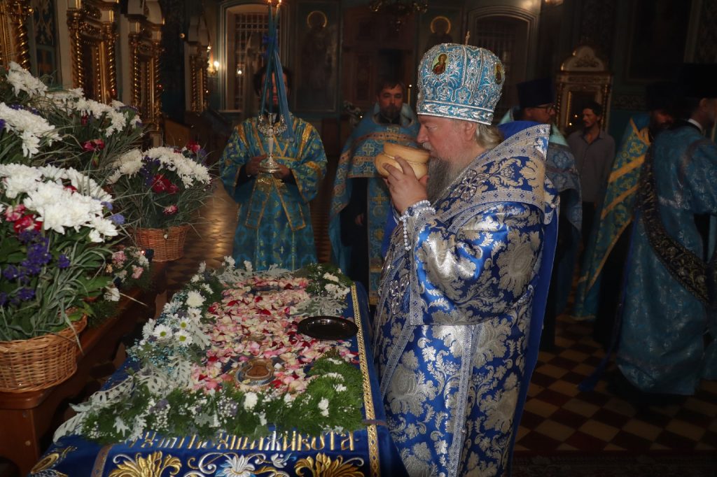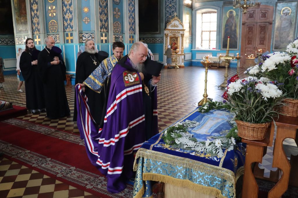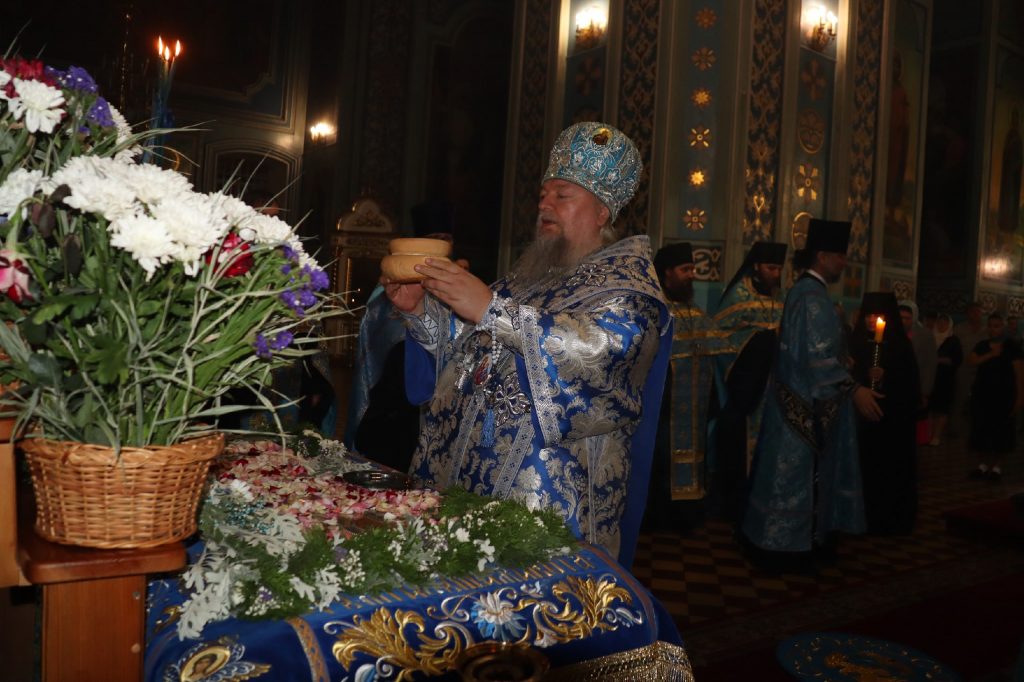 Вечером 29 августа 2025 года, в пятницу седмицы 12-й по Пятидесятнице, епископ Сердобский и Спасский Митрофан совершил всенощное бдение с чином Погребения Плащаницы Пресвятой Богородицы в кафедральном соборе Архангела Михаила г.Сердобска.