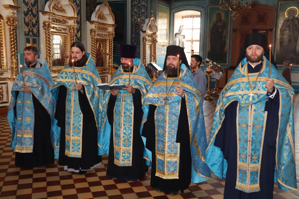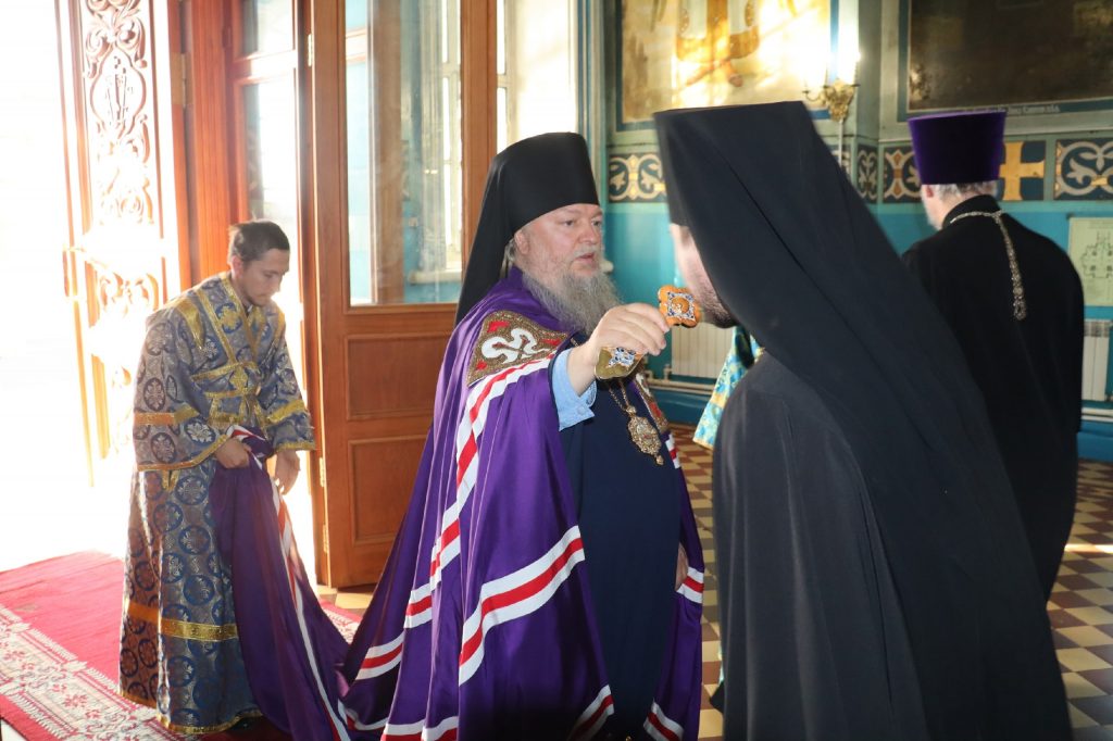 Его Преосвященству сослужили: иеромонах Амвросий (Макаров), врио. секретаря Епархиального Управления; благочинный Сердобского округа, председатель епархиальной комиссии по канонизации святых иеромонах Тимофей (Рынковой); благочинный монастырей Сердобской епархии, настоятель Сазанского Пещерного монастыря Казанской Алексиево-Сергиевской пустыни пос.Сазанье Сердобского района игумен Михей (Мигунов); настоятель храма святого преподобного Сергия Радонежского г.Сердобска иеромонах Вениамин (Гришинов); настоятель церкви Казанской иконы Божией Матери с.Пригородное Сердобского района протоиерей Роман Скворцов; ключарь кафедрального собора Архангела Михаила г.Сердобска, епархиальный древлехранитель иерей Роман Турецких; настоятель храма свт. Николая Чудотворца р.п.Колышлей иерей Димитрий Пятунин; клирик собора и руководитель епархиального отдела религиозного образования и катехизации иерей Александр Федин; настоятель храма святого равноапостольного князя Владимира г.Сердобска иерей Максим Лосенков; настоятель молитвенного дома Святителя Николая чудотворца с.Кирово Сердобского района, служащий священник храма святого равноапостольного великого князя Киевского Владимира г.Сердобска иерей Павел Феоктистов; иеродиакон Иннокентий (Ганин); диакон Владимир Эрекайкин, диакон Михаил Клопов.