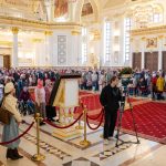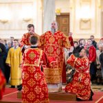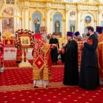 После богослужения Высокопреосвященный владыка Серафим преподал для целования Крест Господень всем собравшимся в храме, а все желающие смогли лично поздравить правящего архипастыря с Воскресением Христовым.