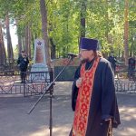 Траурная церемония завершилась возложением цветов и венков к месту захоронения советских воинов. Участники митинга почтили память погибших минутой молчания.
