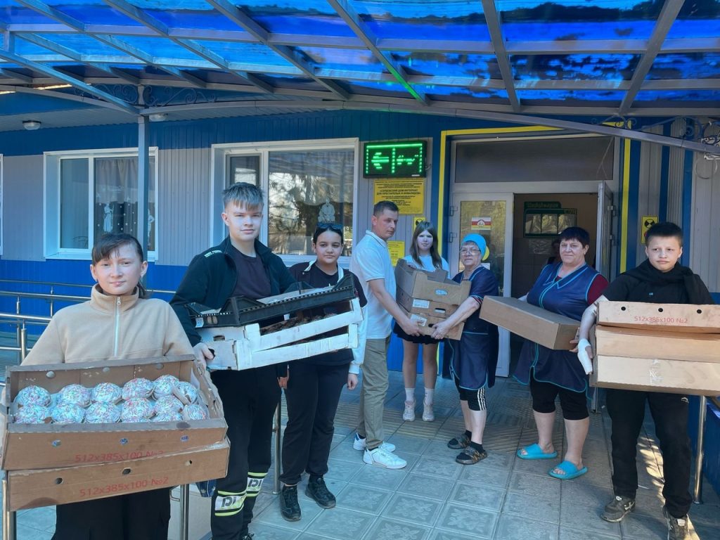 В этот светлый день волонтеры Сердобского центра «Ладошки счастья» традиционно поздравили жителей Сердобского дома-интерната для престарелых и инвалидов. За день до праздника волонтеры при непосредственном участии настоятеля храма святого равноапостольного князя Владимира г.Сердобска иерея Максима Лосенкова, возглавляющего епархиальный отдел по делам молодёжи, подготавливали праздничные наборы, которые в дальнейшем были переданы опекаемым Дома престарелых.