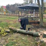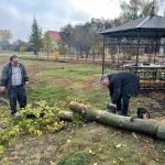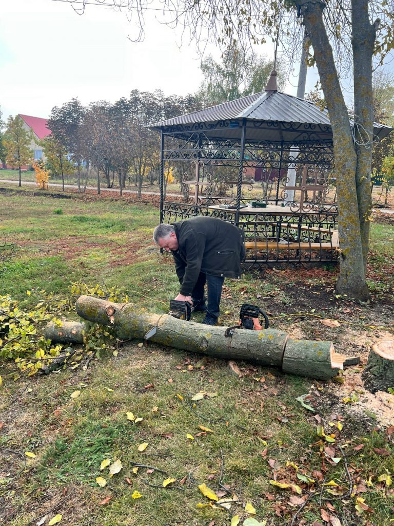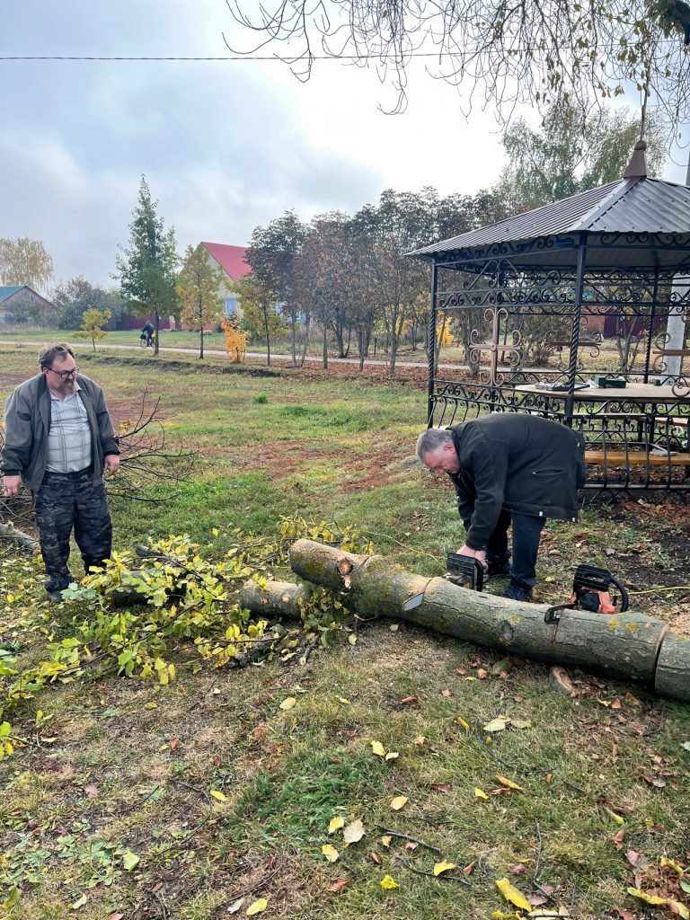 Кроме посадочных работ прихожане приступили к удалению старых, сухих деревьев.