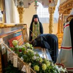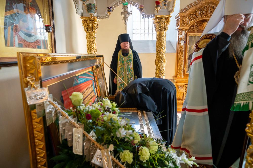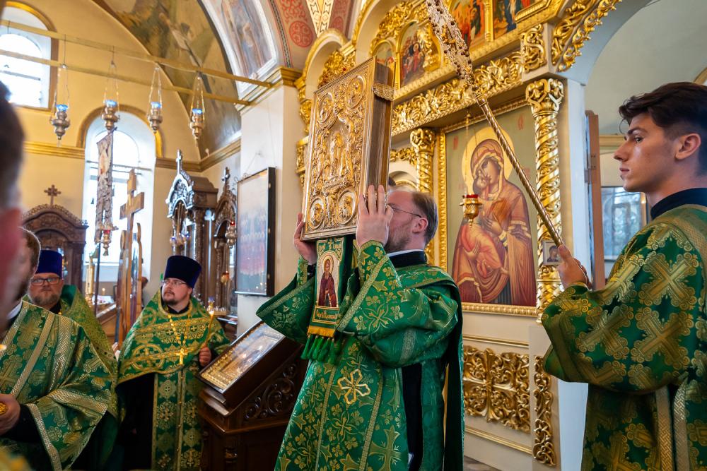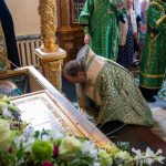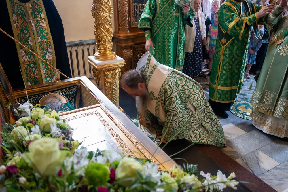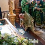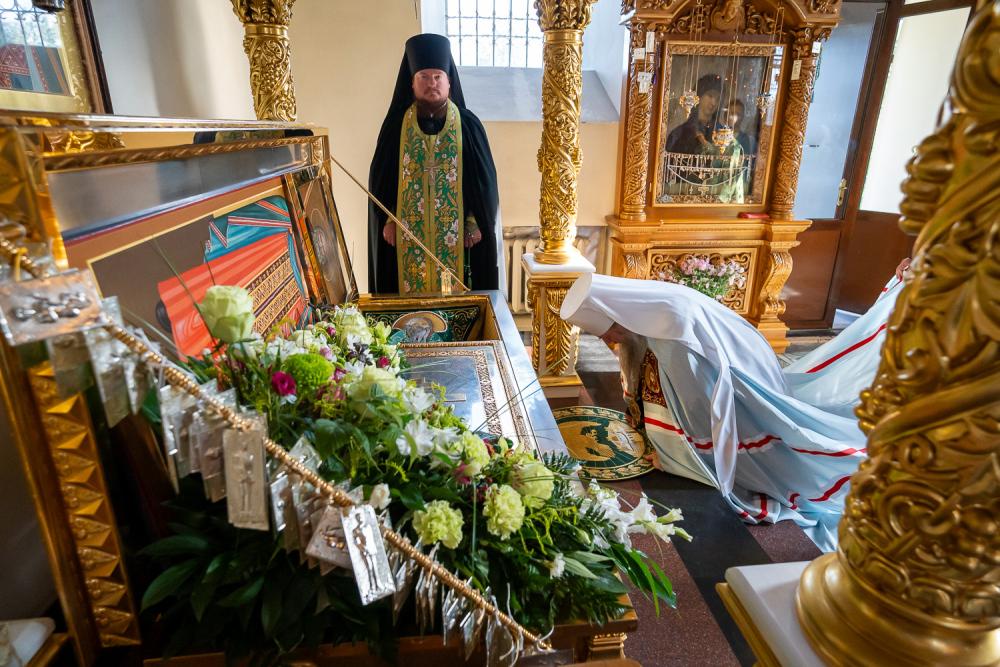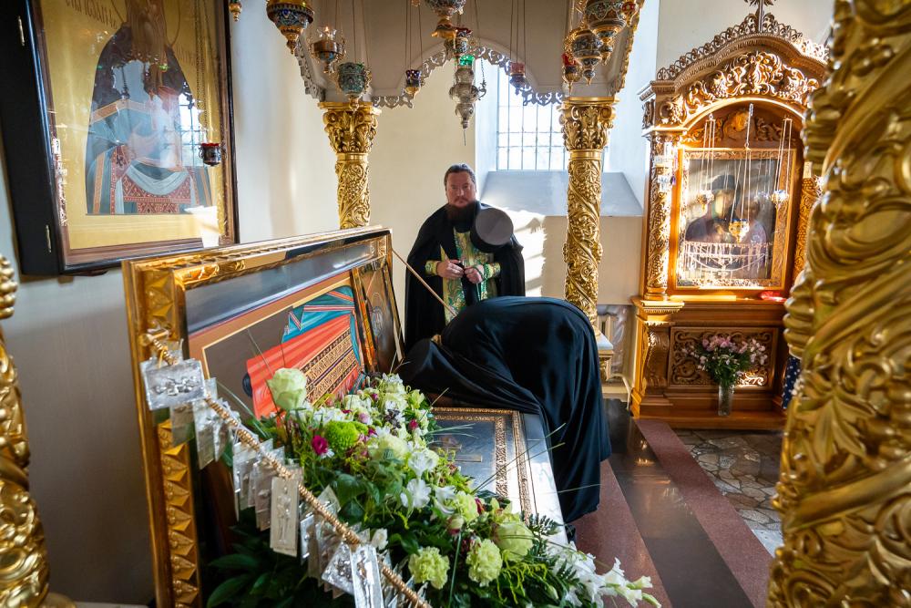 За вечерним богослужением Преосвященный владыка Сергий совершил литию с освящением хлебов, пшеницы, вина и елея. Во время утрени, по прочтении Святого Евангелия, митрополит Серафим помазал освященным елеем верующих, собравшихся в храме накануне праздника.