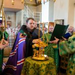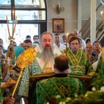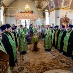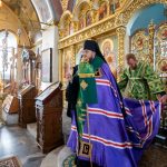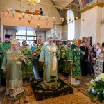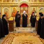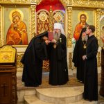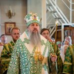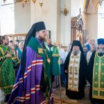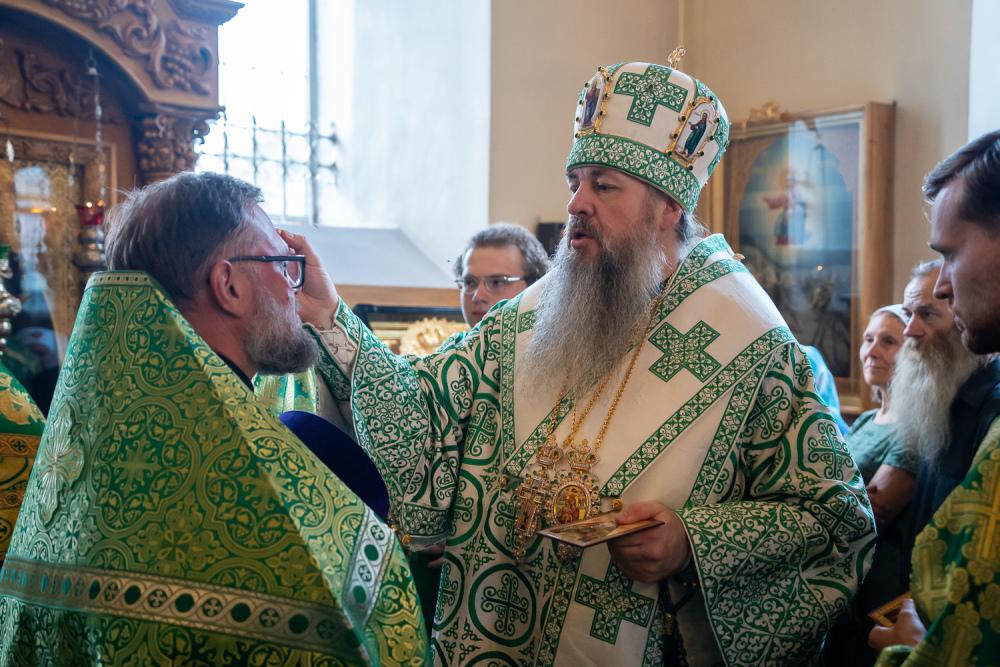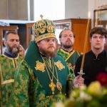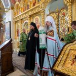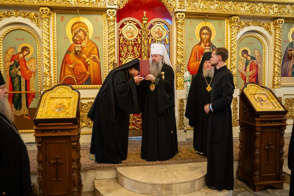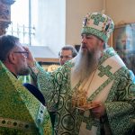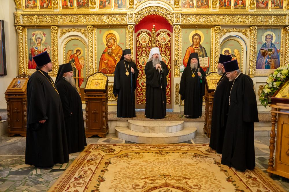 После этого Высокопреосвященный владыка Серафим поздравил епископа Алапаевского и Ирбитского Сергия с прошедшим 40-летием и преподнес ему на молитвенную память панагию.