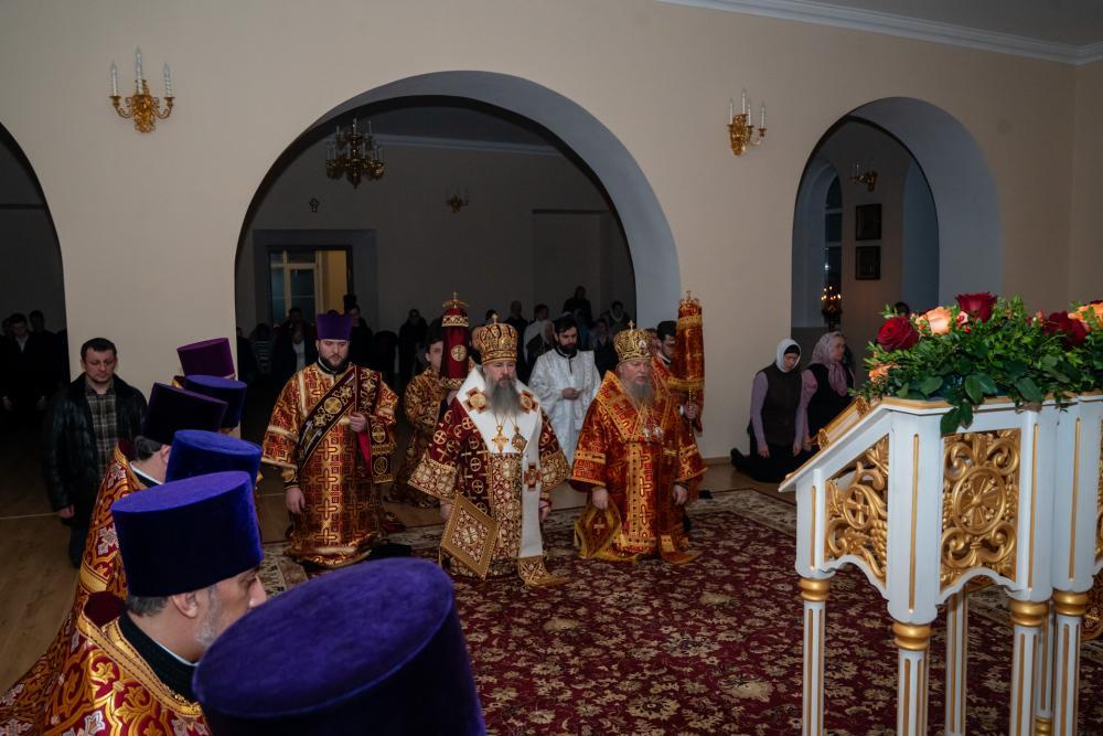 Вечером 8 февраля 2025 года, в канун Недели о мытаре и фарисее, накануне празднования Собора новомучеников и исповедников Церкви Русской, митрополит Пензенский и Нижнеломовский Серафим, епископ Сердобский и Спасский Митрофан совершили всенощное бдение в Воскресенском храме при Пензенском епархиальном управлении.