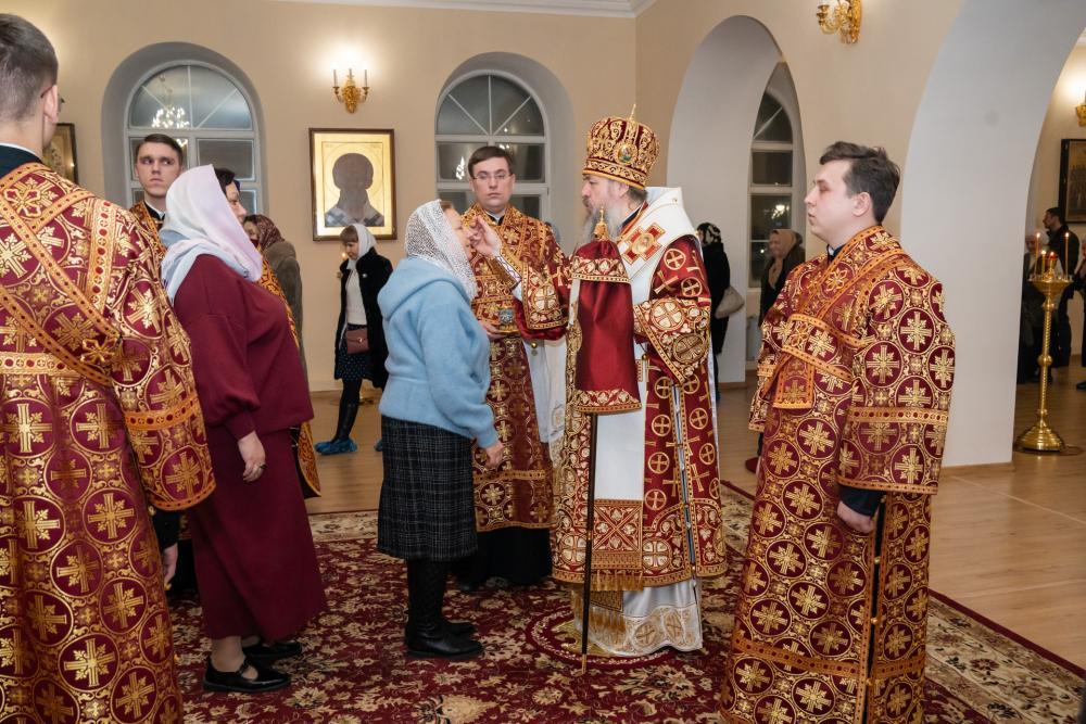 За вечерним богослужением Высокопреосвященный митрополит Серафим совершил литию с освящением хлебов, пшеницы, вина и елея. Во время утрени, по прочтении Святого Евангелия, глава Пензенской митрополии помазал освященным елеем верующих, собравшихся в соборе накануне воскресного дня.