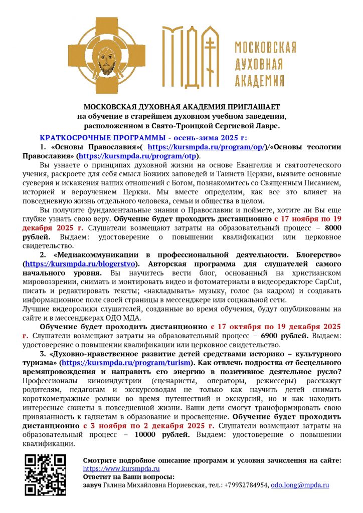 МОСКОВСКАЯ ДУХОВНАЯ АКАДЕМИЯ ПРИГЛАШАЕТ