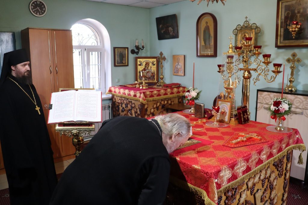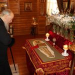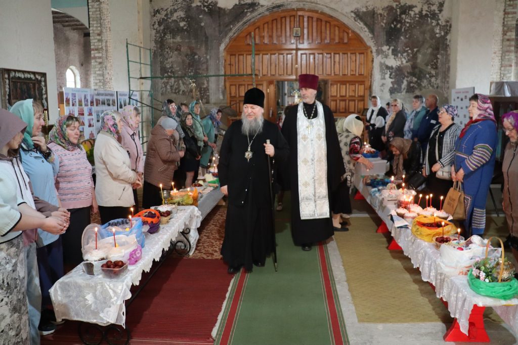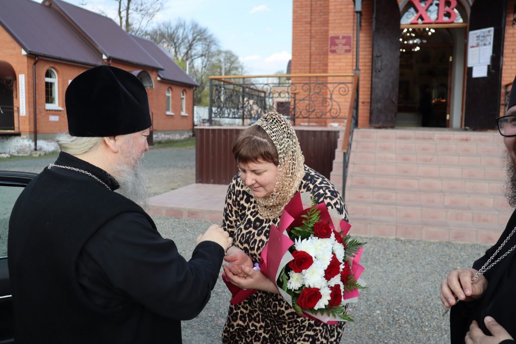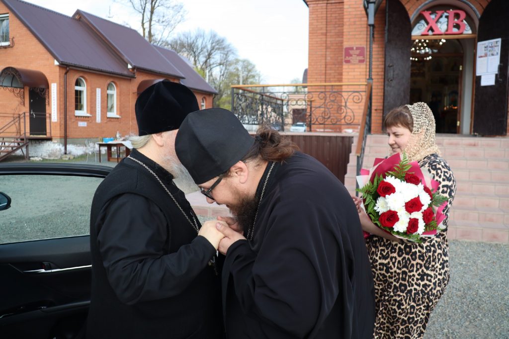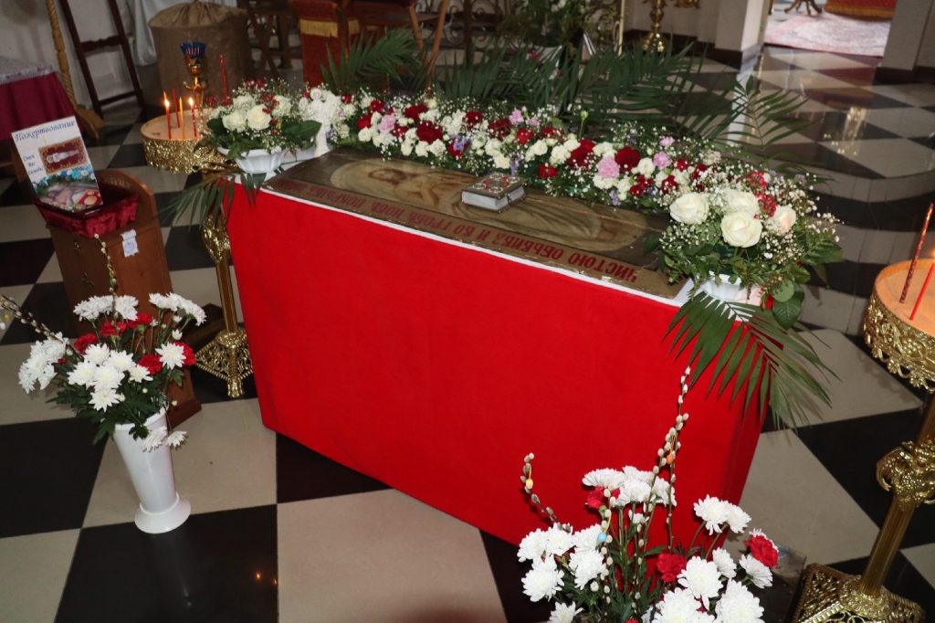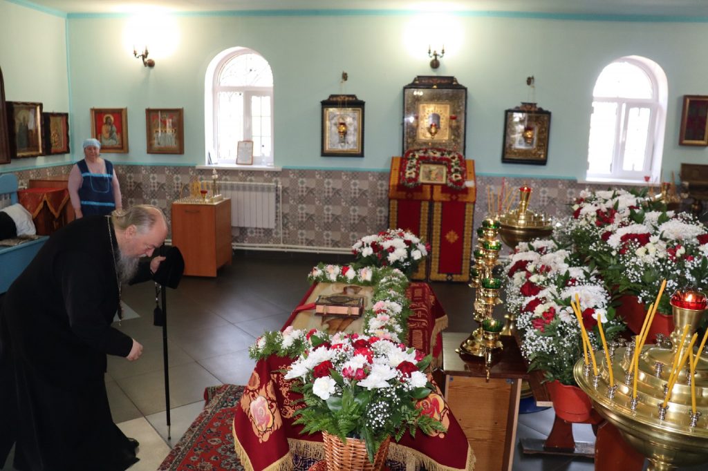 В каждом храме Владыка Митрофан поздравил духовенство и прихожан с наступающим праздником Воскресения Христова и приложился к Плащанице Христа Спасителя.