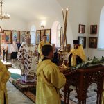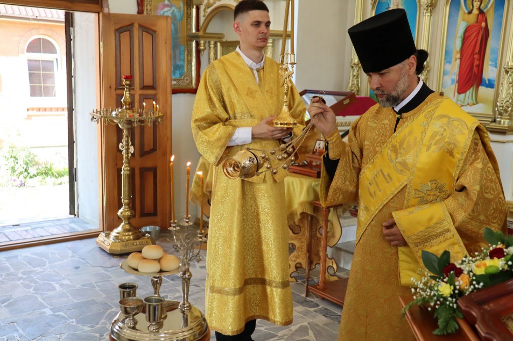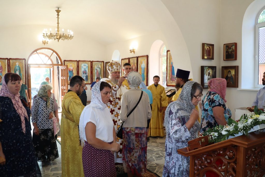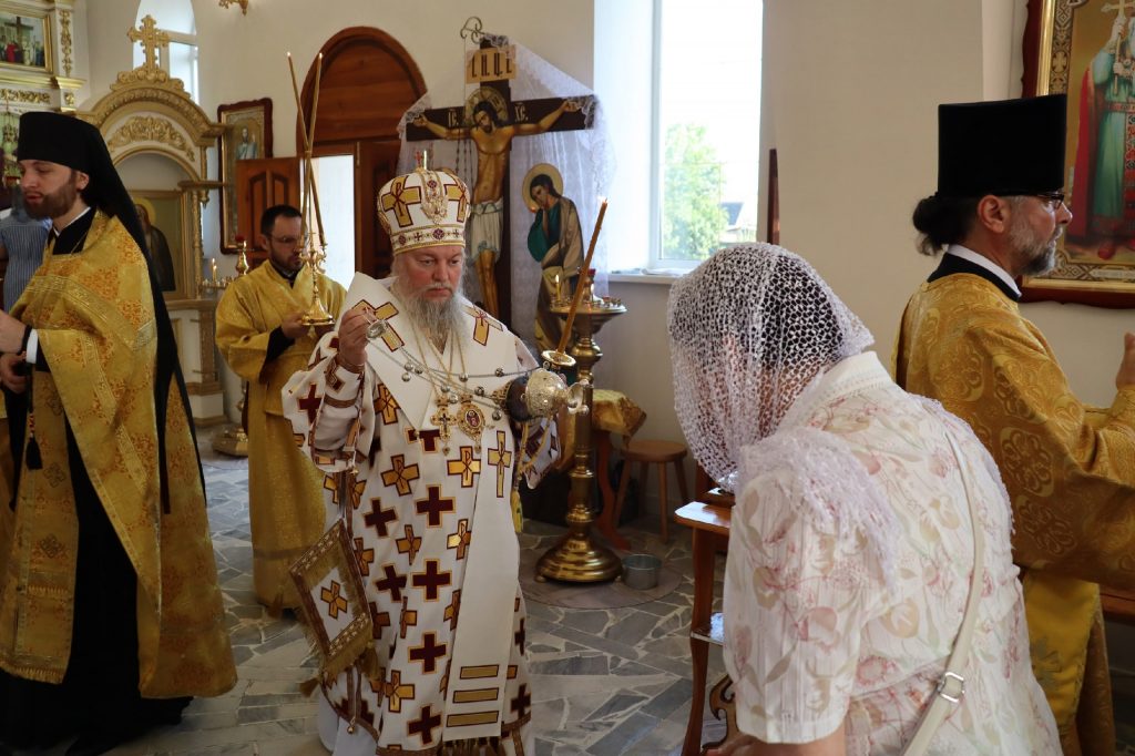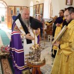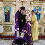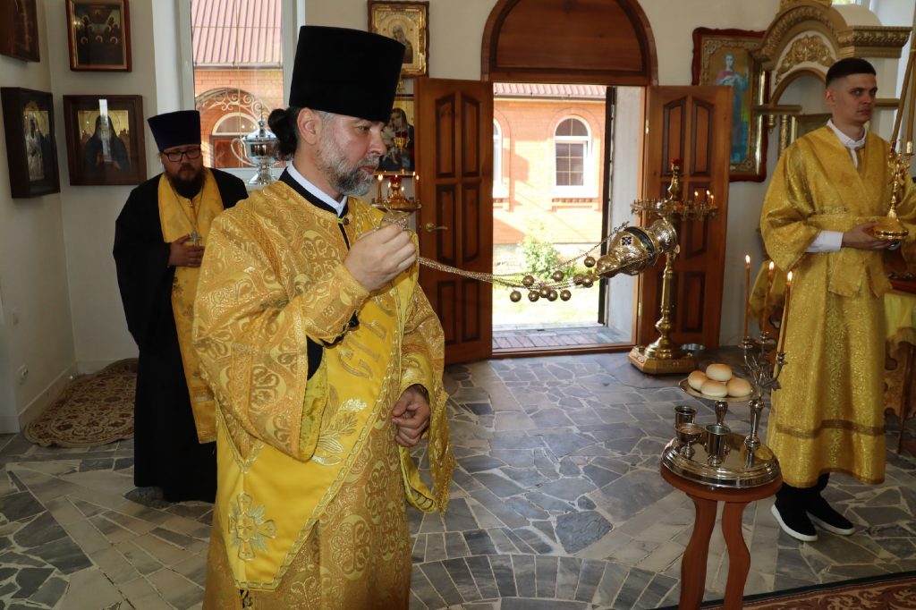 За вечерним богослужением Преосвященнейший Владыка Митрофан совершил литию с освящением хлебов.